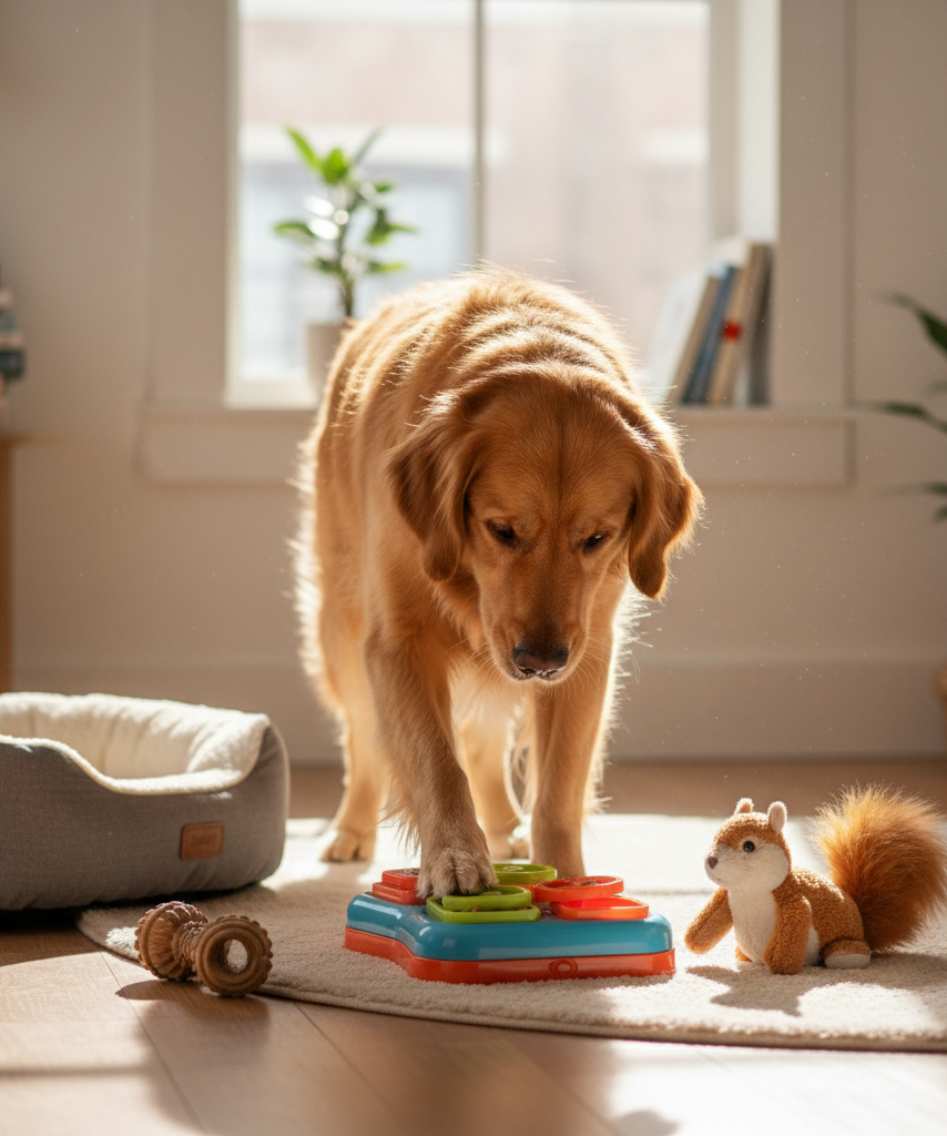 Mental stimulation matters just as much as physical exercise for many dogs. Puzzle toys and slow feeders can stretch mealtime, prevent gulping, and give busy dogs something constructive to focus on.