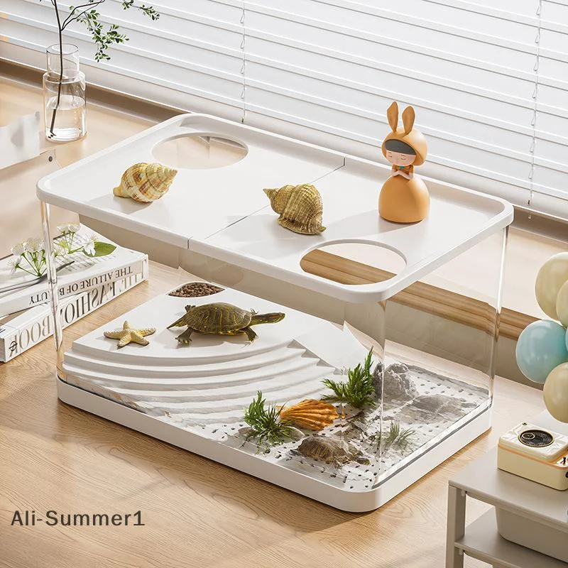 【E】PET New Transparent Mini Fish Tank Aquarium Drop Resistant Hydroponic With Lid Ecological Desktop Home Lazy Tank Turtle Tank – PawMarketplace