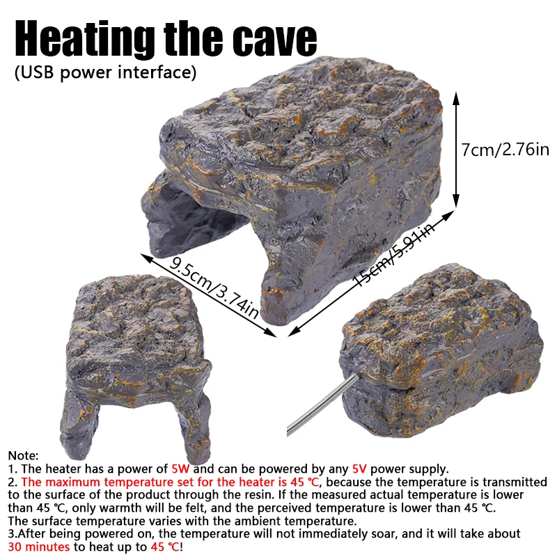 1PC Lizard Heating And Insulation Cave Pet Snake Heating Parrot Bird Hamster Totoro Heating Platform Simulated Rock Landscaping