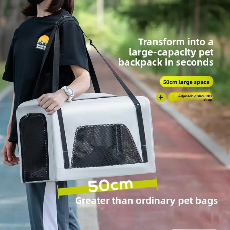 The stroller-backpack hybrid design is lightweight and easily foldable, making it convenient for travel with your small pet.