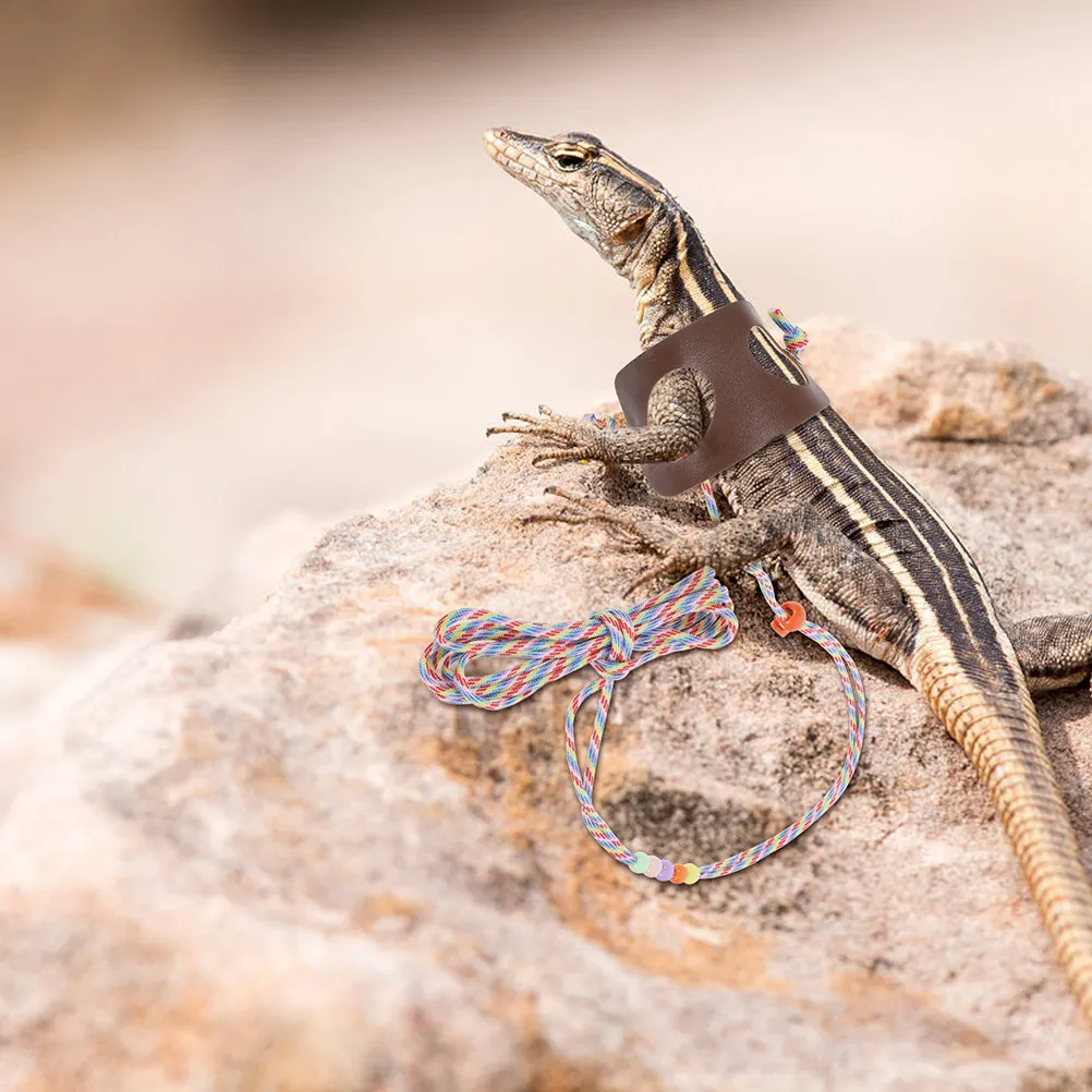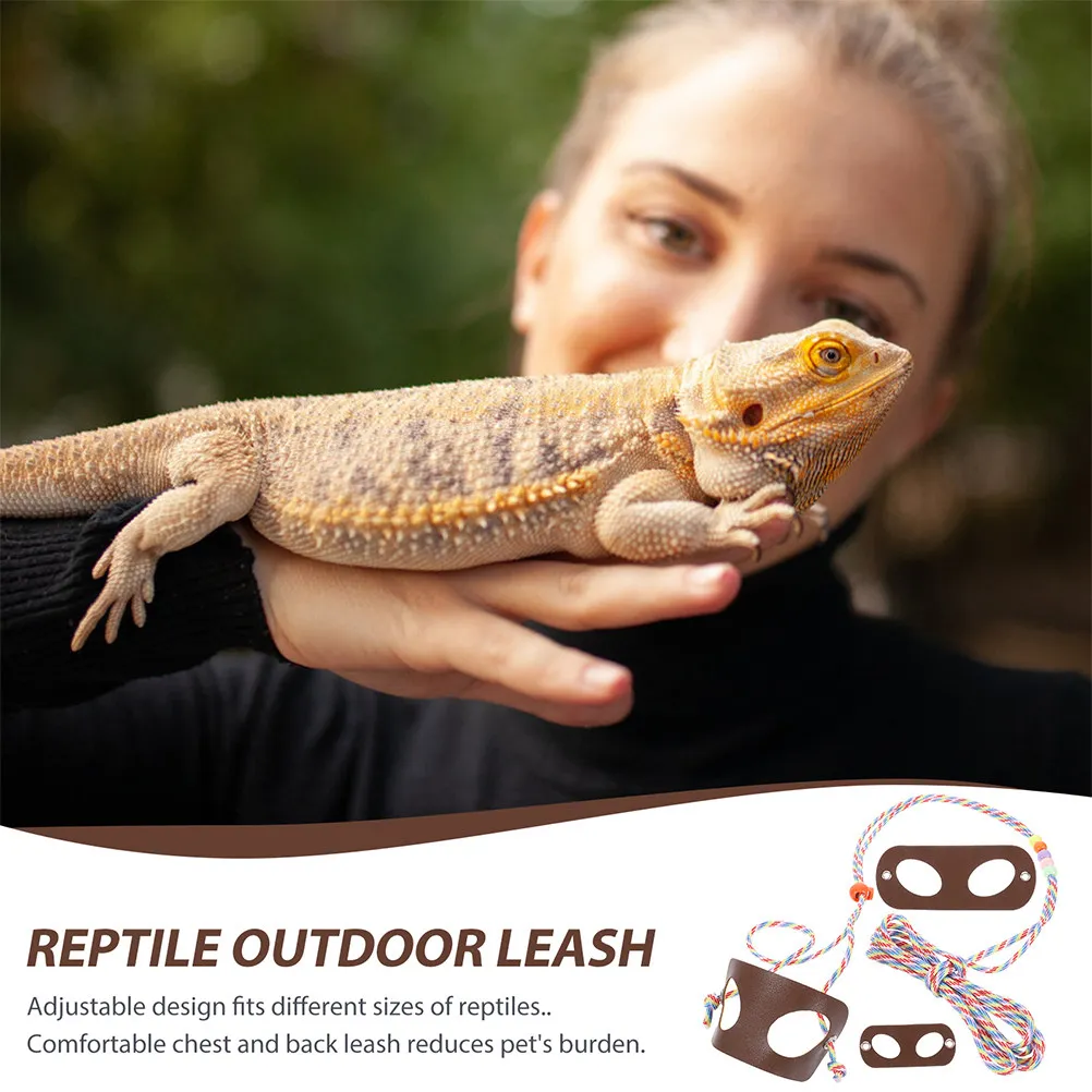 2Pcs Adjustable Bearded Dragon Leash Wear-Resistant Lizard Walking Leash Outdoor Small Pet Harness Reptile Traction Rope