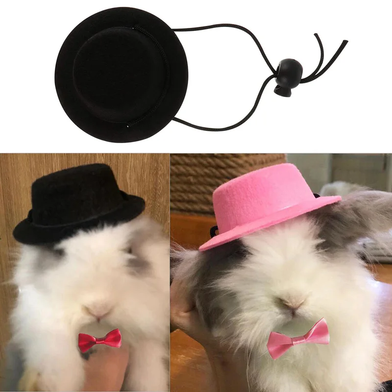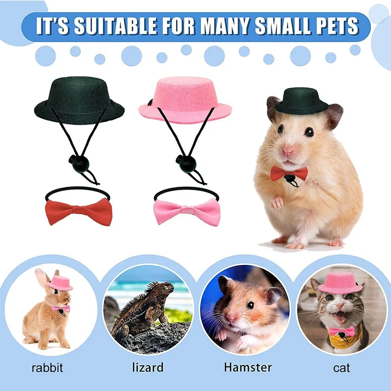 2Pcs/Set Guinea Pig Hat and Bowtie Hamster Costume Outfit Rats Chinchilla Cool Pet Rabbit Cap Hat Small Pet Items Accessories