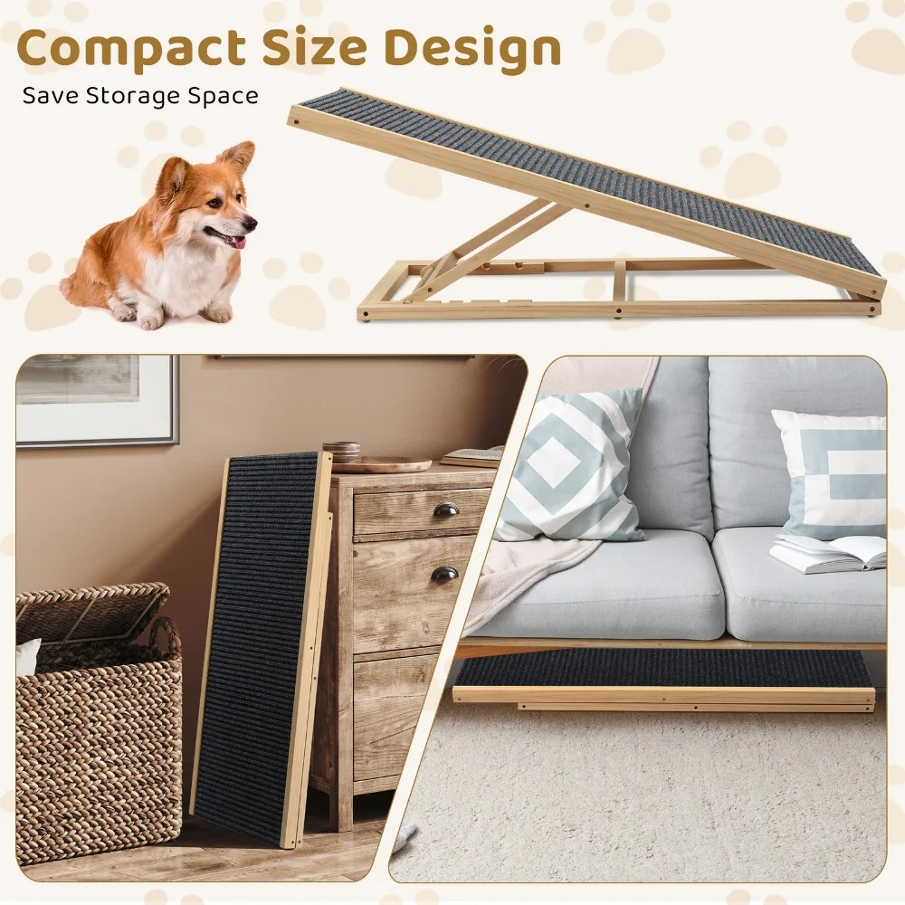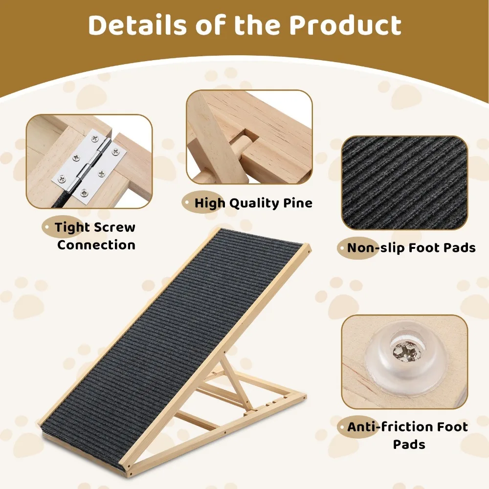 Durable Construction: Crafted from high-quality solid wood, this pet ramp offers exceptional strength and stability, ensuring your dog can safely access vehicles without worry.