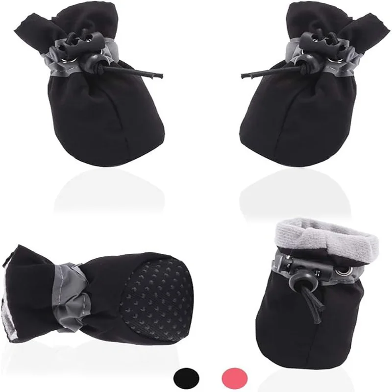 4Pcs Dog Boots Waterproof Non-slip Reflective Strip Adjustable Drawstring Soft Breathable Pet Shoes for Small Medium Dogs Winter – PawMarketplace