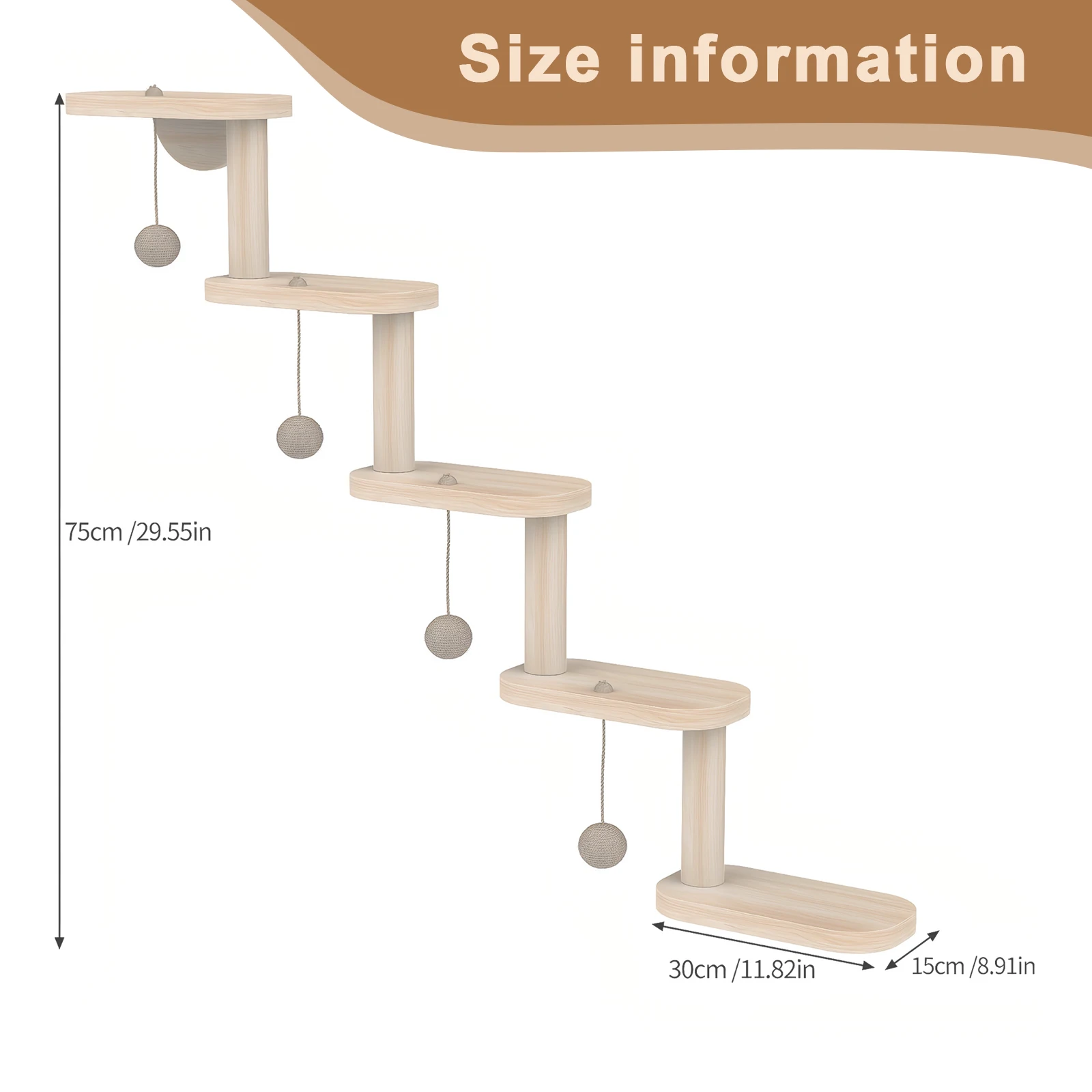 Features: 1.Sturdy and Long-Lasting: Our cat wall furniture corner climbing shelf is crafted from premium wood panels, designed to withstand playful cats up to 12kg. It offers a sturdy and lasting platform for endless feline fun in your home. 2.Comfortable Climbing Frame: Featuring a high-quality sisal scratching board, this wooden cat climbing frame provides a cozy and slip-resistant surface. Smooth, burr-free edges ensure safety for both large cats and kittens. 3.Space-Saving Design: The wall-mounted cat climbing shelves are ideal for compact living spaces, giving your cat an elevated environment to climb, perch, and scratch without taking up valuable floor area. 4.DIY Creative Combinations: With abundant accessories, you can freely configure and install the wooden cat ladder frame to suit your wall layout and your cat’s preferences. Adjust the setup to optimal jumping heights for more excitement. 5.Easy Assembly: These cat wall steps shelves are simple to install and come with all required hardware. Pre-drilled holes make secure wall mounting quick and hassle-free, creating an ideal wall-mounted climbing experience.