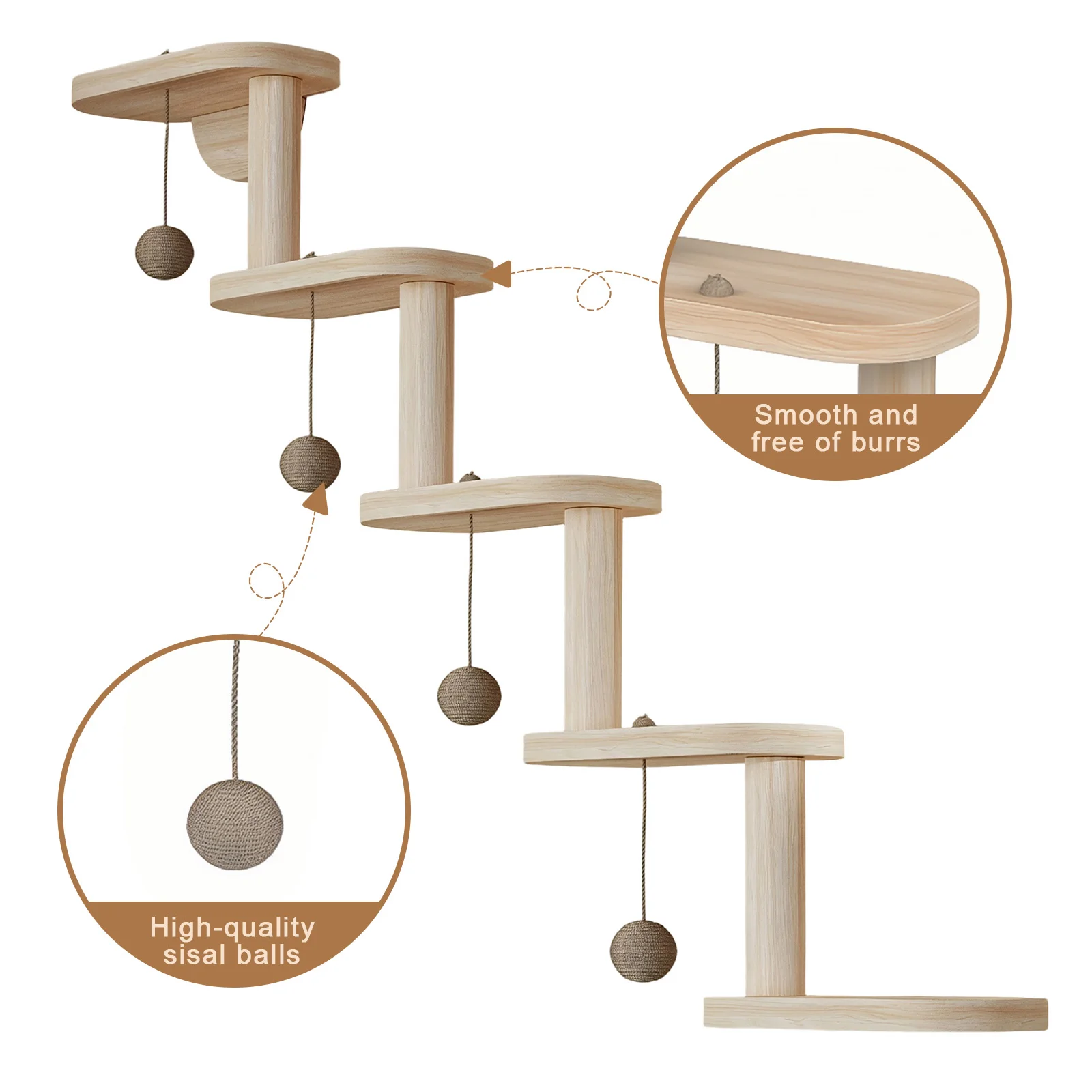 Wall Mounted Wooden Cat Climbing Frame Cat Wall Furniture Corner Climbing Shelf with 5 Step Wooden Cat Ladder Frame for Sleeping Playing Climbing