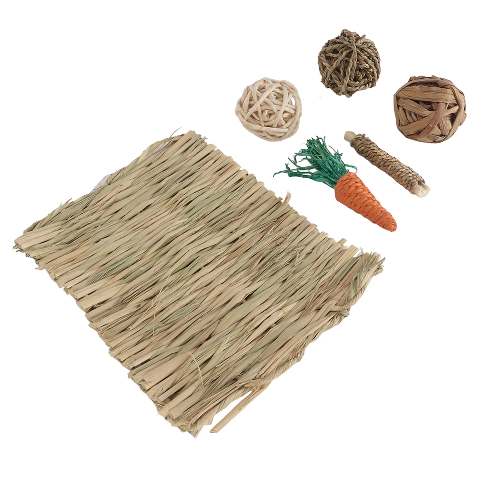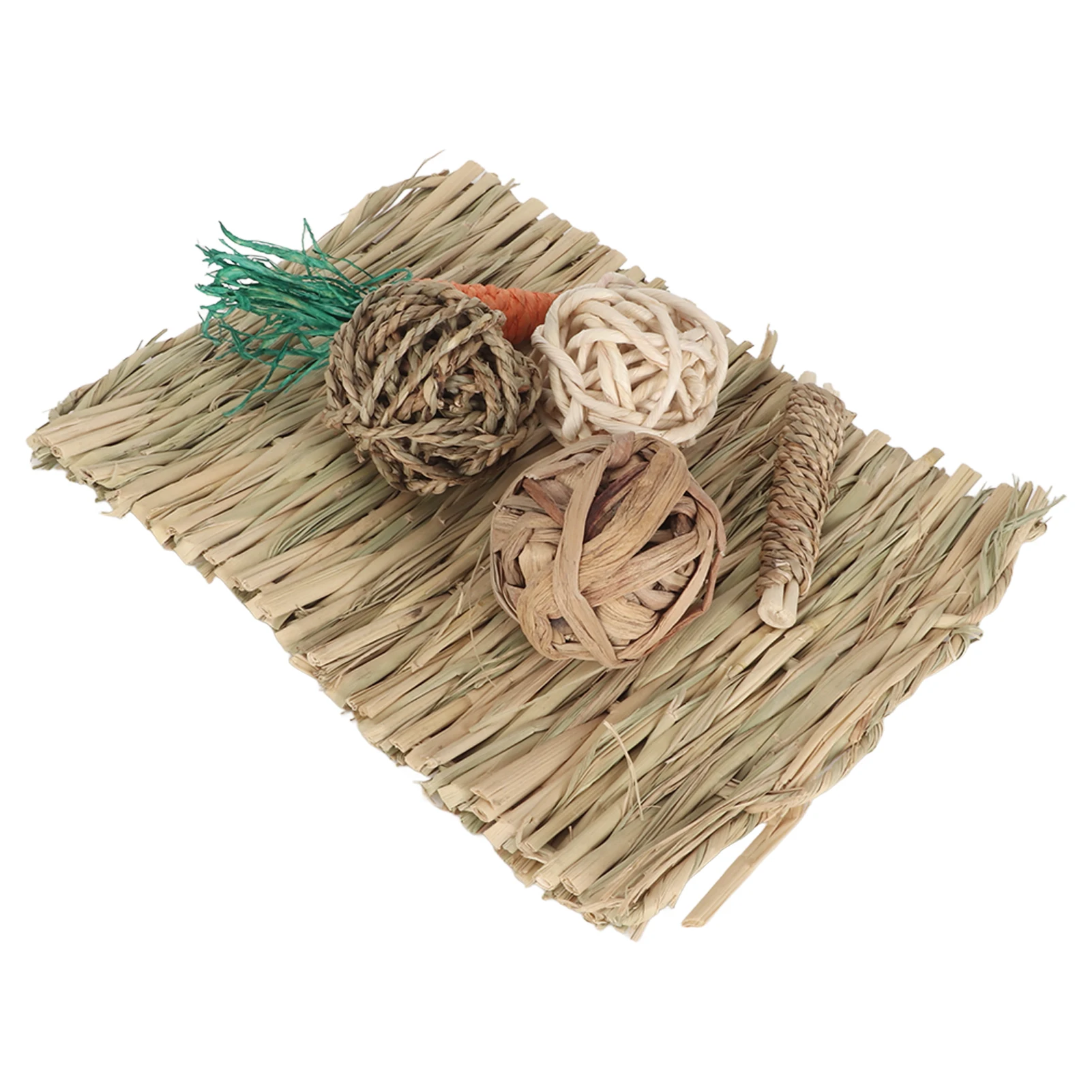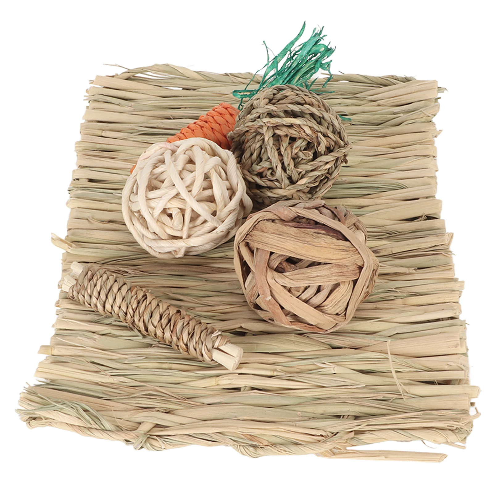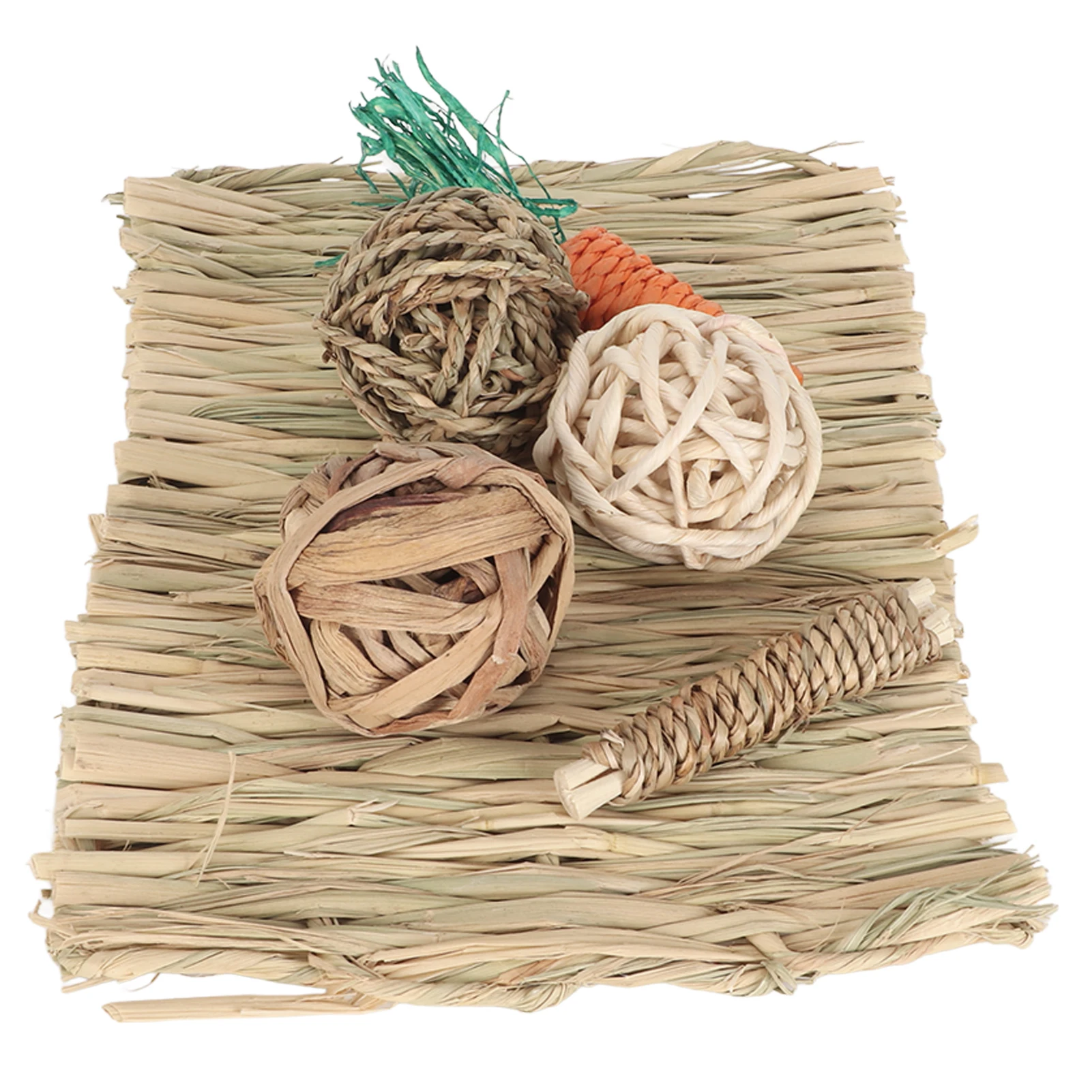 Hamster Chew Toy Set Hand Woven Teeth Grinding Toxic Free Pet Grass Mat Ball Toys for Guinea Pig Rabbit Parrot