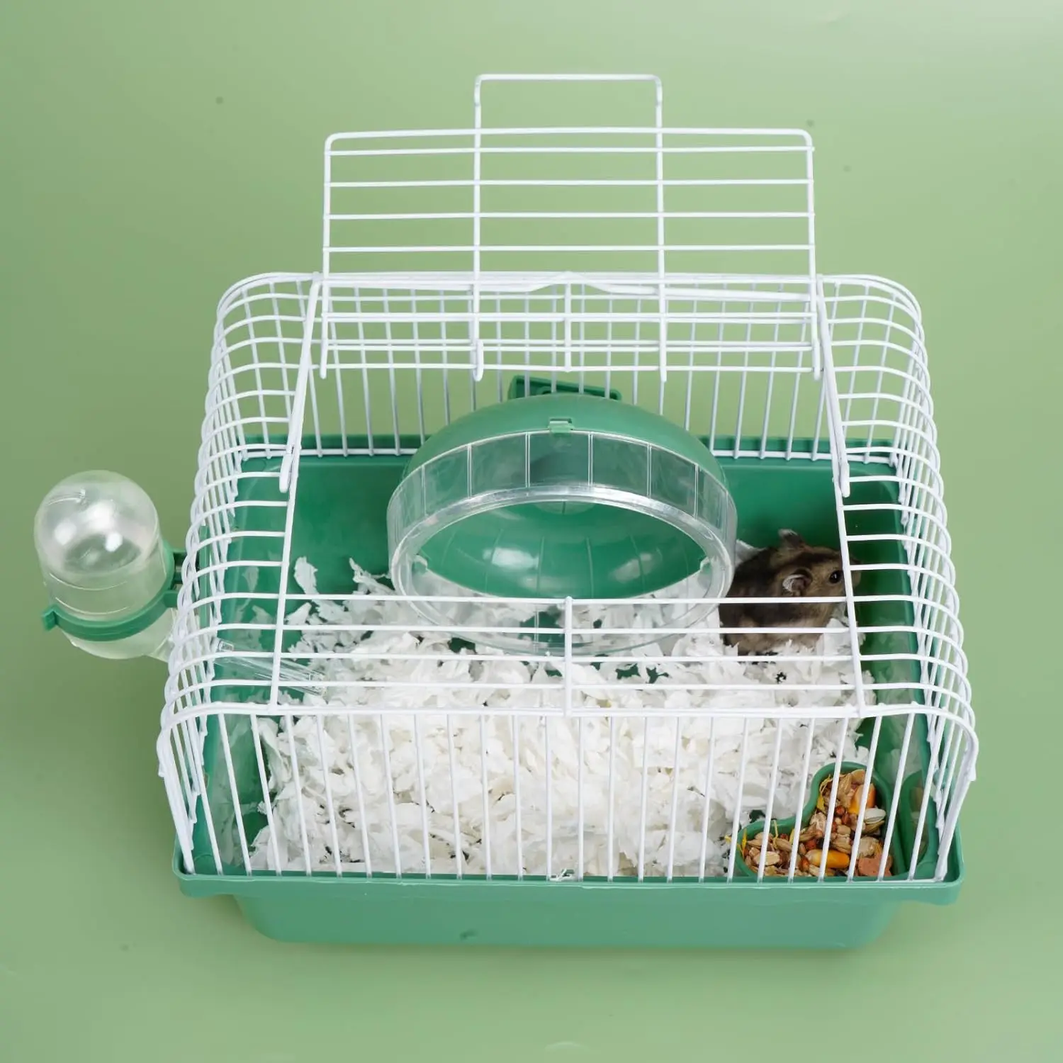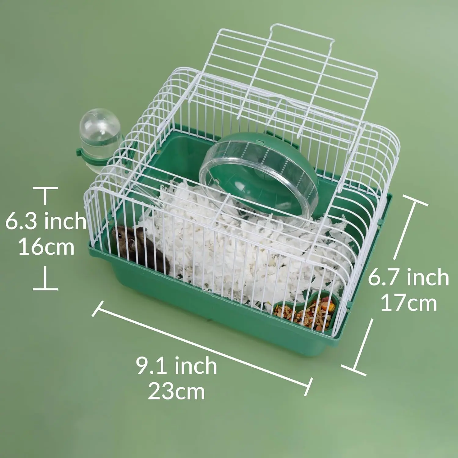 9.1×6.7×6.3 inch Small Portable Hamster Cages, Hamster Carrier, Pet Travel Carrier, Small Animal Pet Cages, with Water Bottle, Food Bowl, Wheel, Green