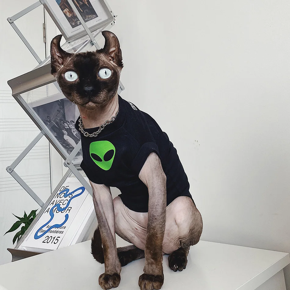 Alien Sphynx Clothes Spring Summer T Shirt Hairless cat Clothes Cotton Vest for Sphinx Cat Ourfits Spring Summer Pet Costume