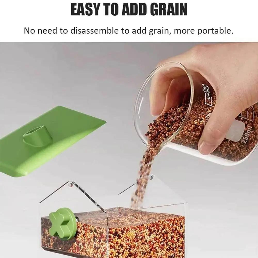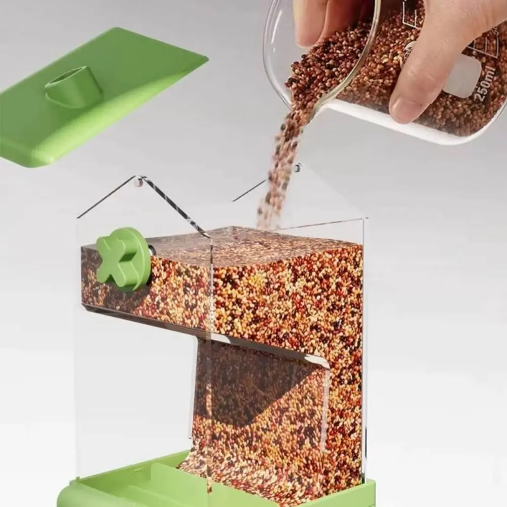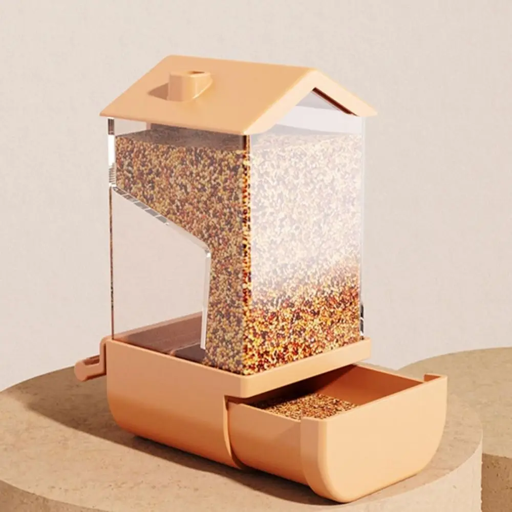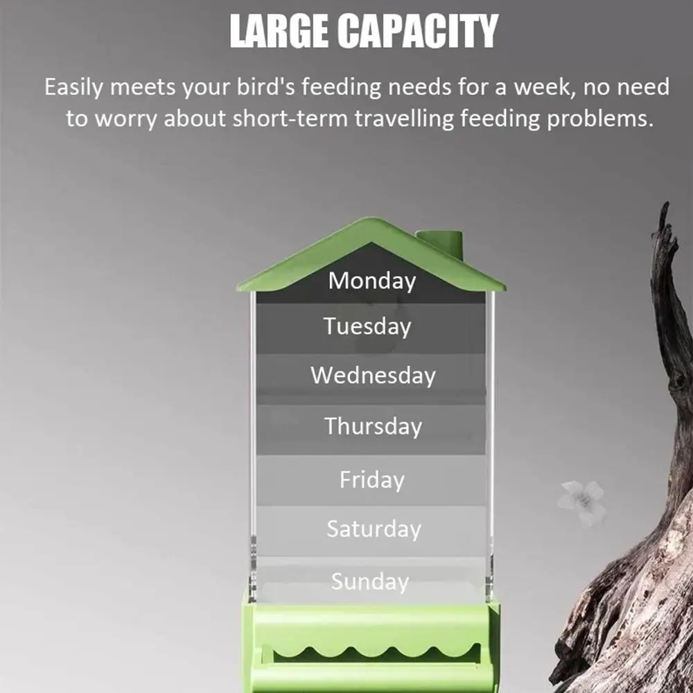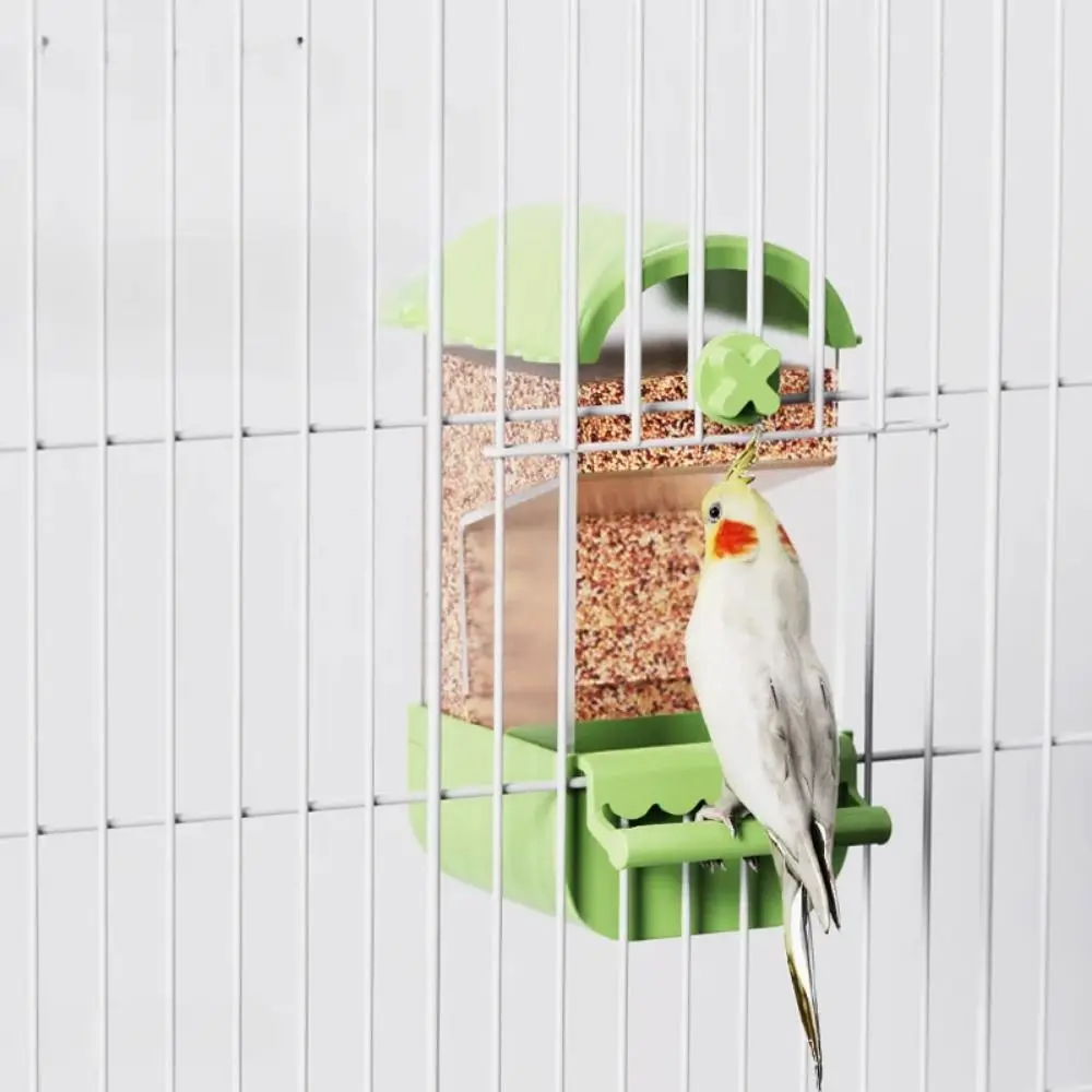 Automatic bird feeder:Parakeet feeder adopts gravity automatic feeding design,put the bird food can automatically fall,save your time and energy, large capacity,when you need to go out,you can put enough food in the bird feeder,it can automatically fall according to the bird’s appetite,you can go to work party,do not have to worry about the bird feeding problems during travel,comederos para pajaritos made of abs + acrylic material,long life.