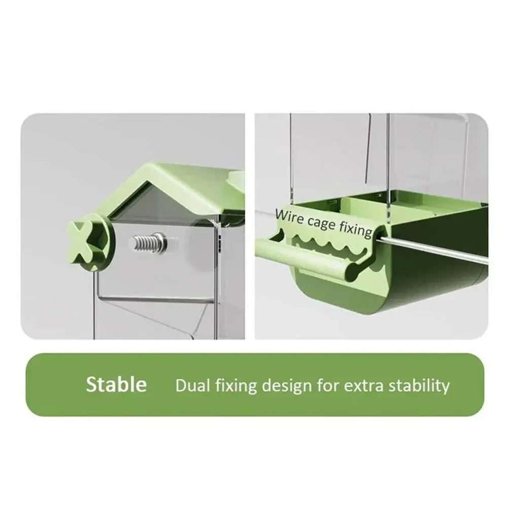 Anti-spatter design:No mess bird feeder uses a semi-enclosed anti-splashing design. When birds eat,multi-angled baffles are effective in preventing bird food from splashing,keeping the cage clean, and widening the baffles is effective in preventing food from getting stuck.