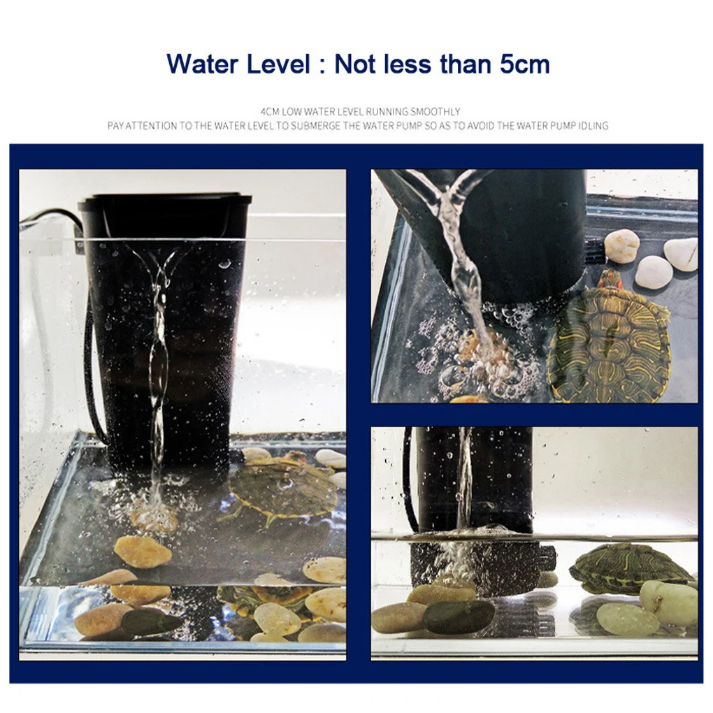 This water filter could be installed easily, you can hang or suck it on the aquarium, it is suitable for low water level.
