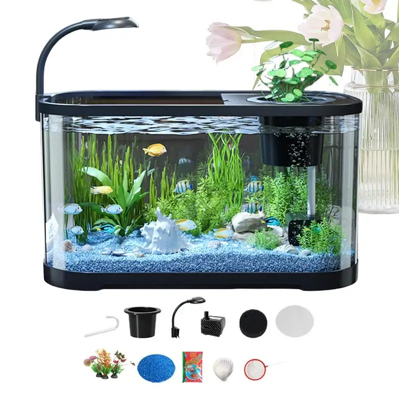 Aquarium Kit Small Gold Fish Tank Starter Kit Desktop Beginner Aquarium Household Fish Bowl for Betta Tortoise Frog Home decor