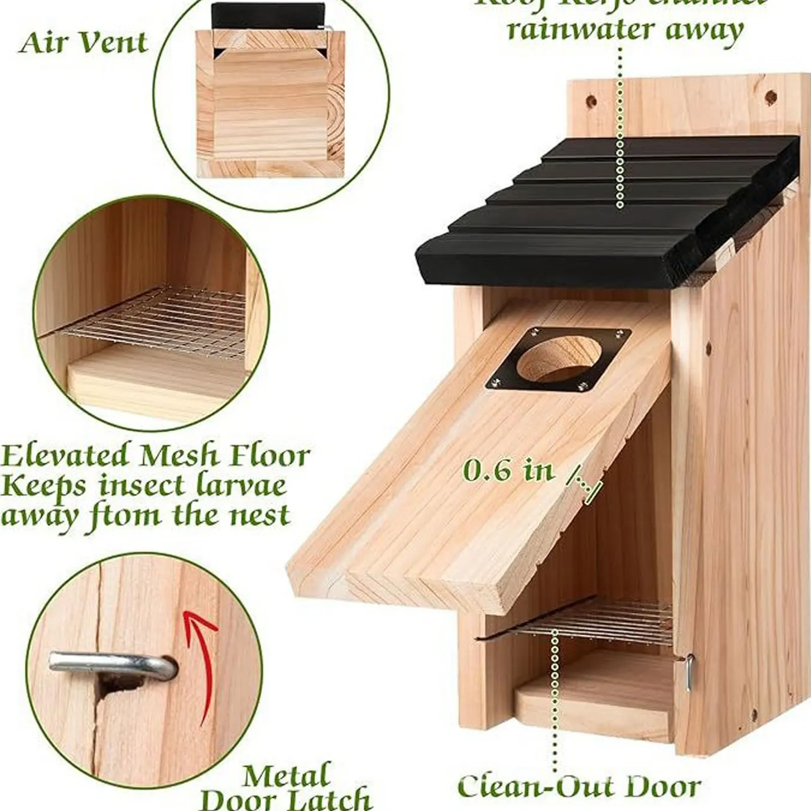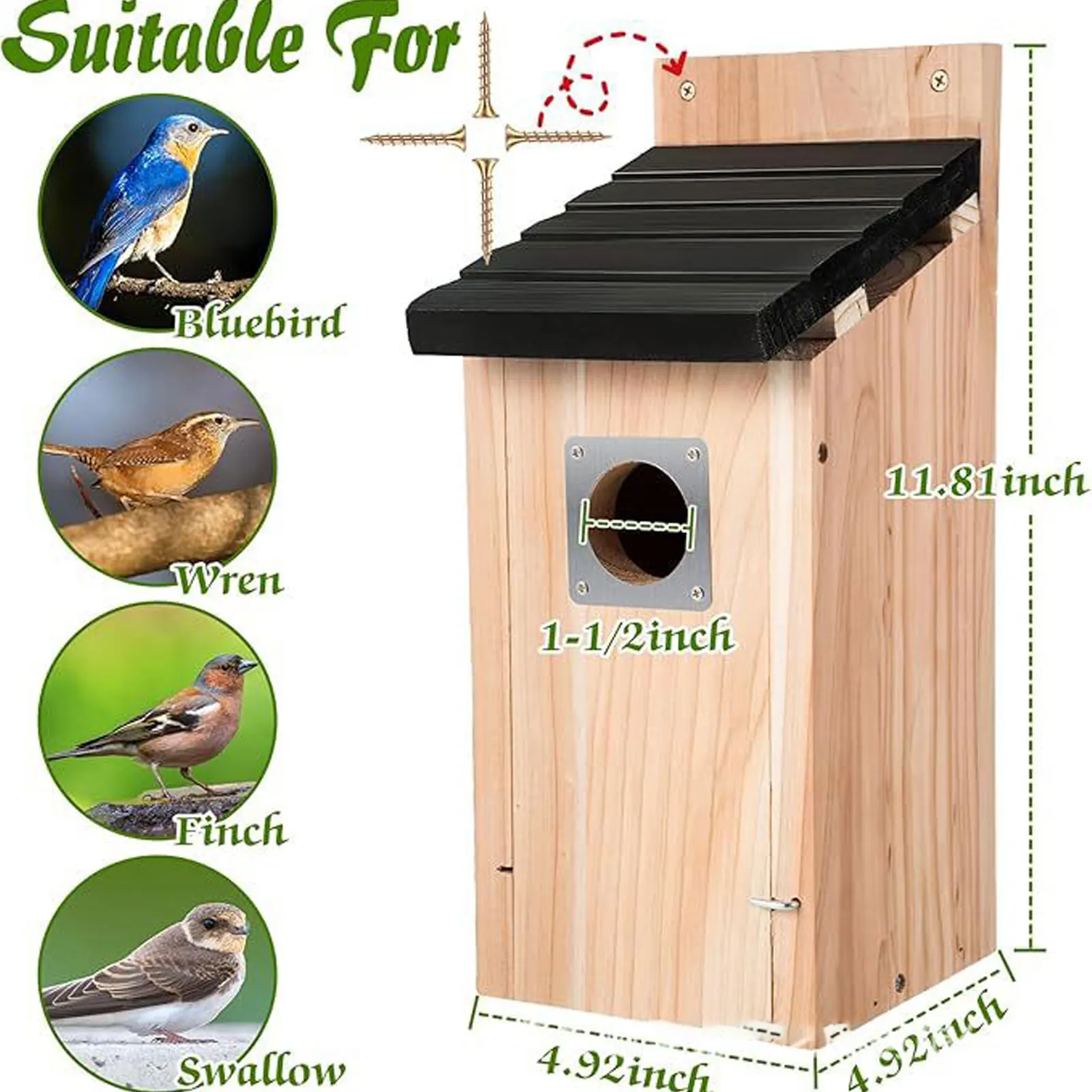 【Premium Material】: Outdoor bird box is made of quality wooden material, which is sturdy, meticulous workmanship not easy to deform, and has good stability