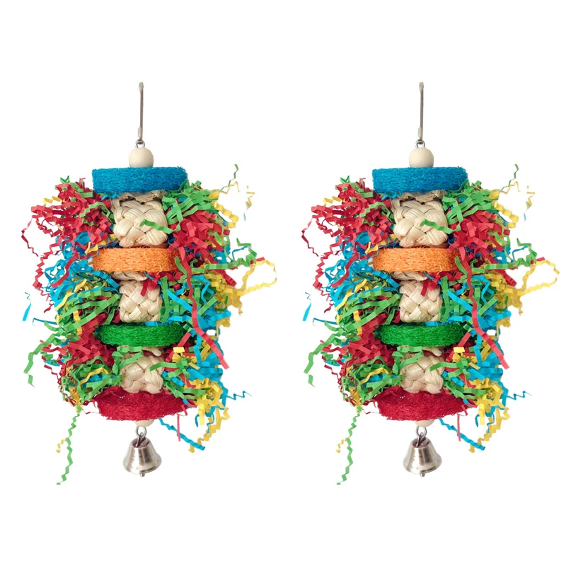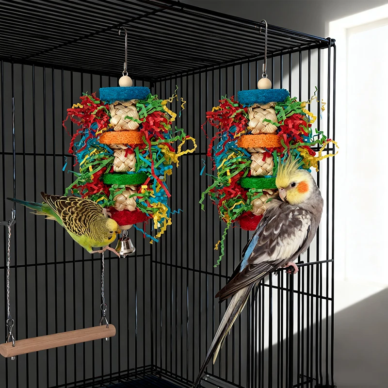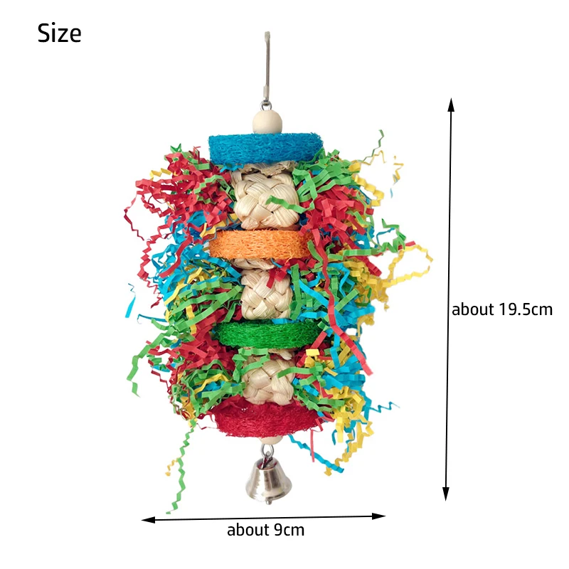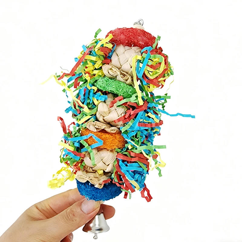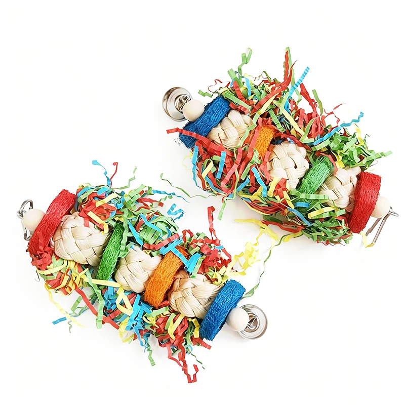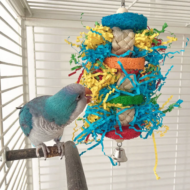 Bird Parrot Toys Colorful Paper Silk Hanging Cage Bird Chewing Toys Natural Corn Husk Weaving With Bell Parrot Molar Bite Toy