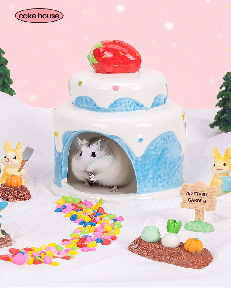 Cake Style Chinchilla Mini Hut Cave Cage Accessory Dwarf Hamsters Gerbils Hedgehog Christmas Small Animal Hideout Ceramic House – PawMarketplace