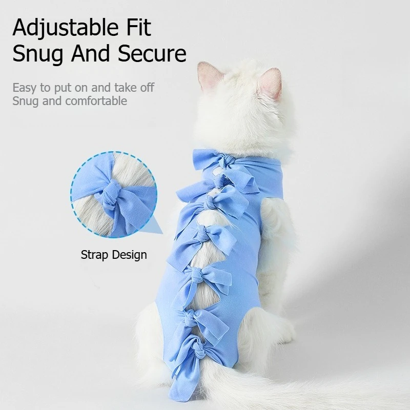 This Cat Surgical Recovery Suit is specially designed for post-operative care, spaying, weaning, and wound protection. It features an adjustable strap design for a custom and snug fit, ensuring close-fitting comfort without slipping. Easy to put on and take off, this suit saves you time and effort while keeping your cat comfortable all day long.