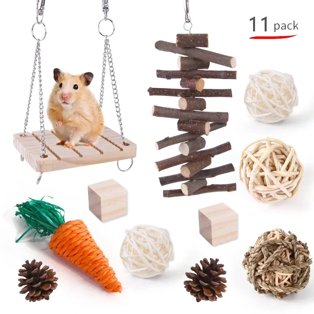 Combination Hamsters Rabbit Rat Toys Hamster Toys Set Pet Rabbit Guinea Pig Parrot Play Molar Wooden Supplies artĂ­culos mascotas – PawMarketplace
