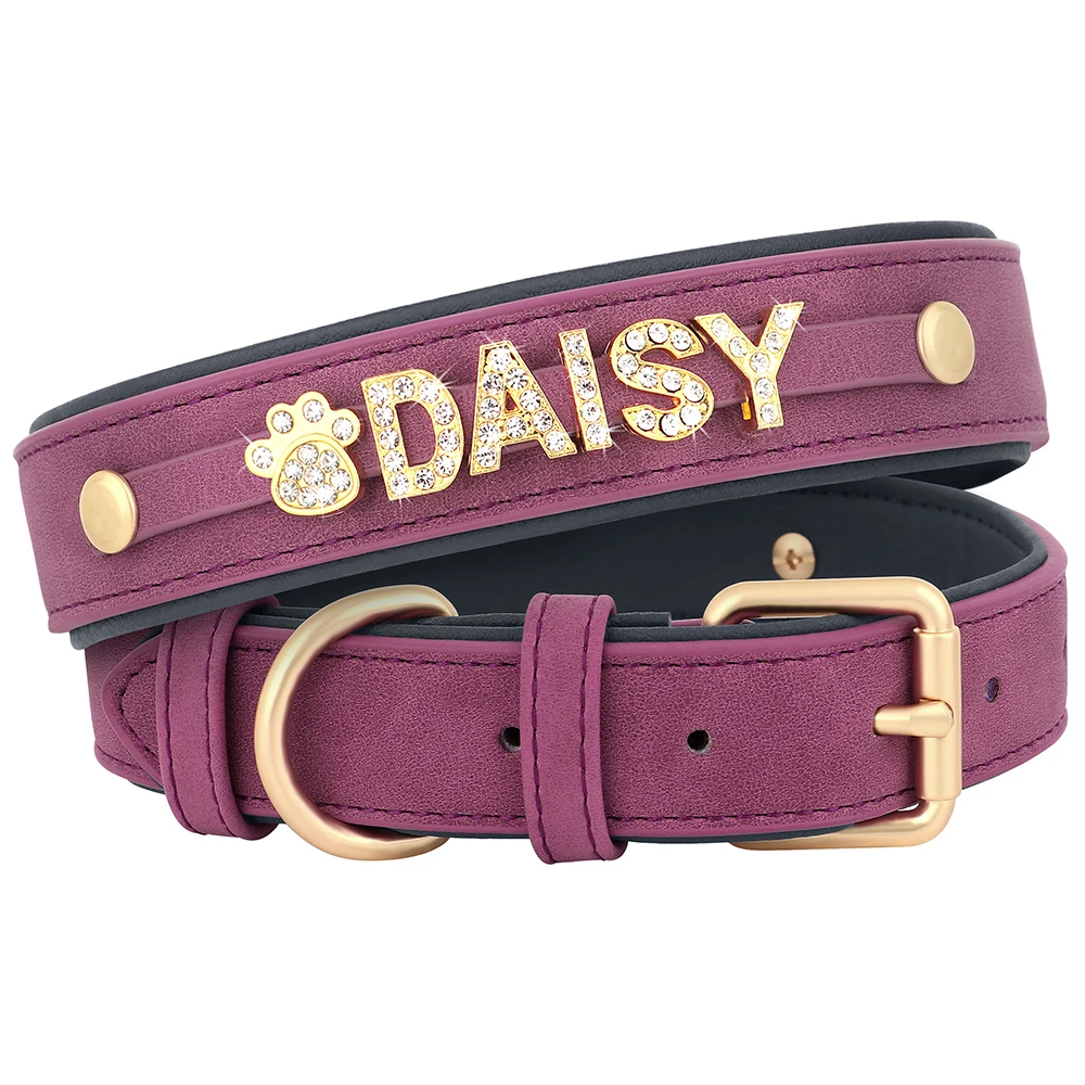 Name: Customized Leather Dog Collar DIY Personalized Small Medium Dogs Chihuahua Pitbull Necklace Free Name Charms Pet Accessories
