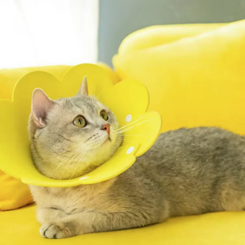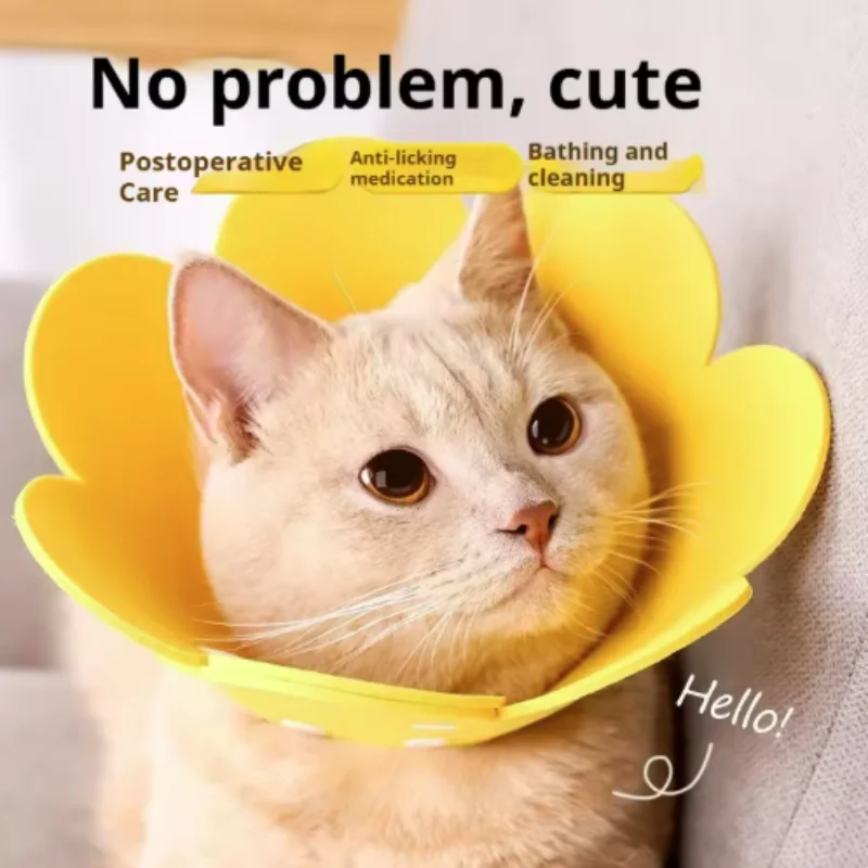 The cute flower-shaped cat recovery collar features an adjustable design, ensuring a perfect fit for your pet's recovery needs.