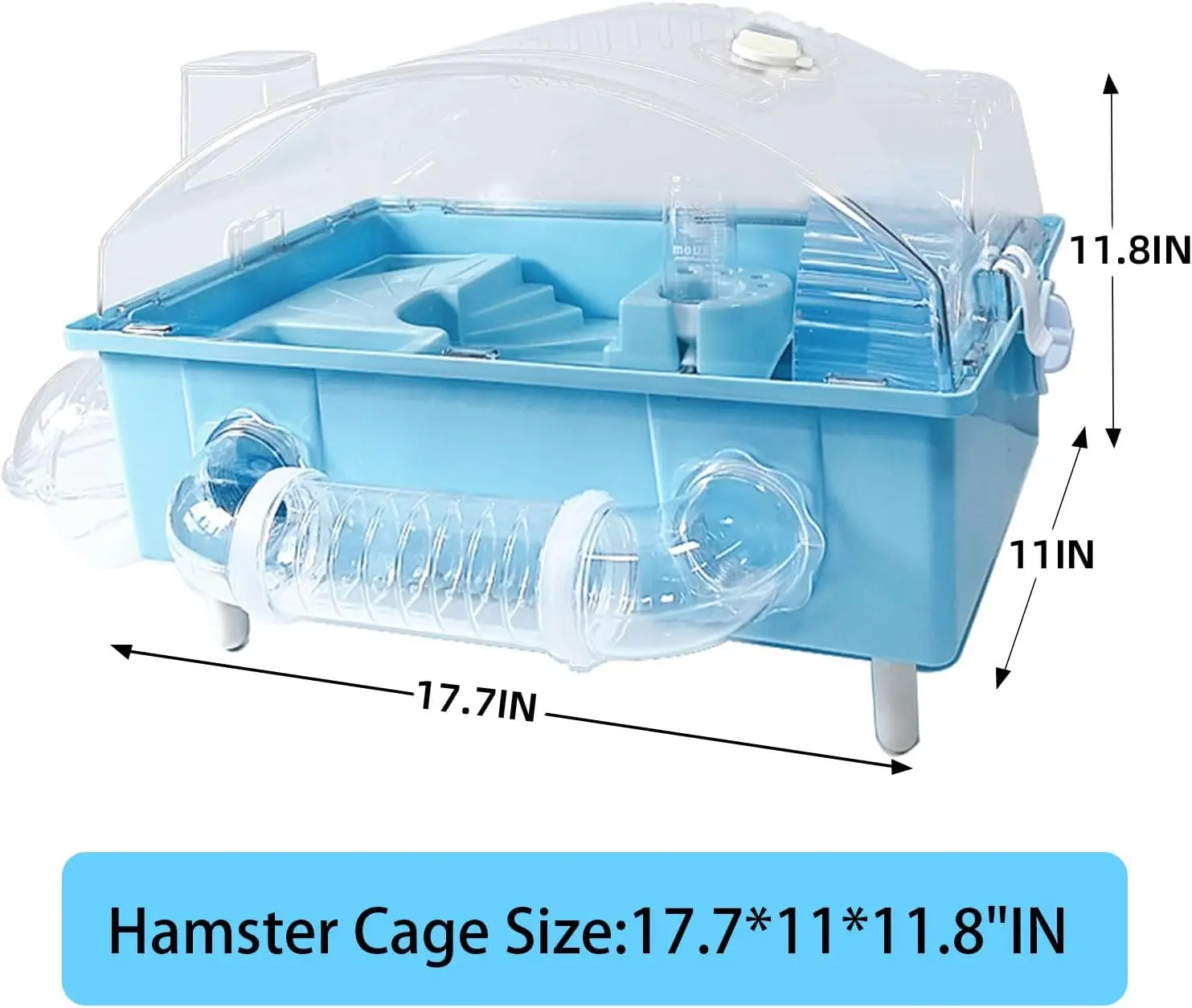 【Quality Material】Crafted from high-quality plastic, the small hamster cage ensures a safe and odor-free environment for your small pet. The raised chassis protects the hamster cage’s bottom from wear.