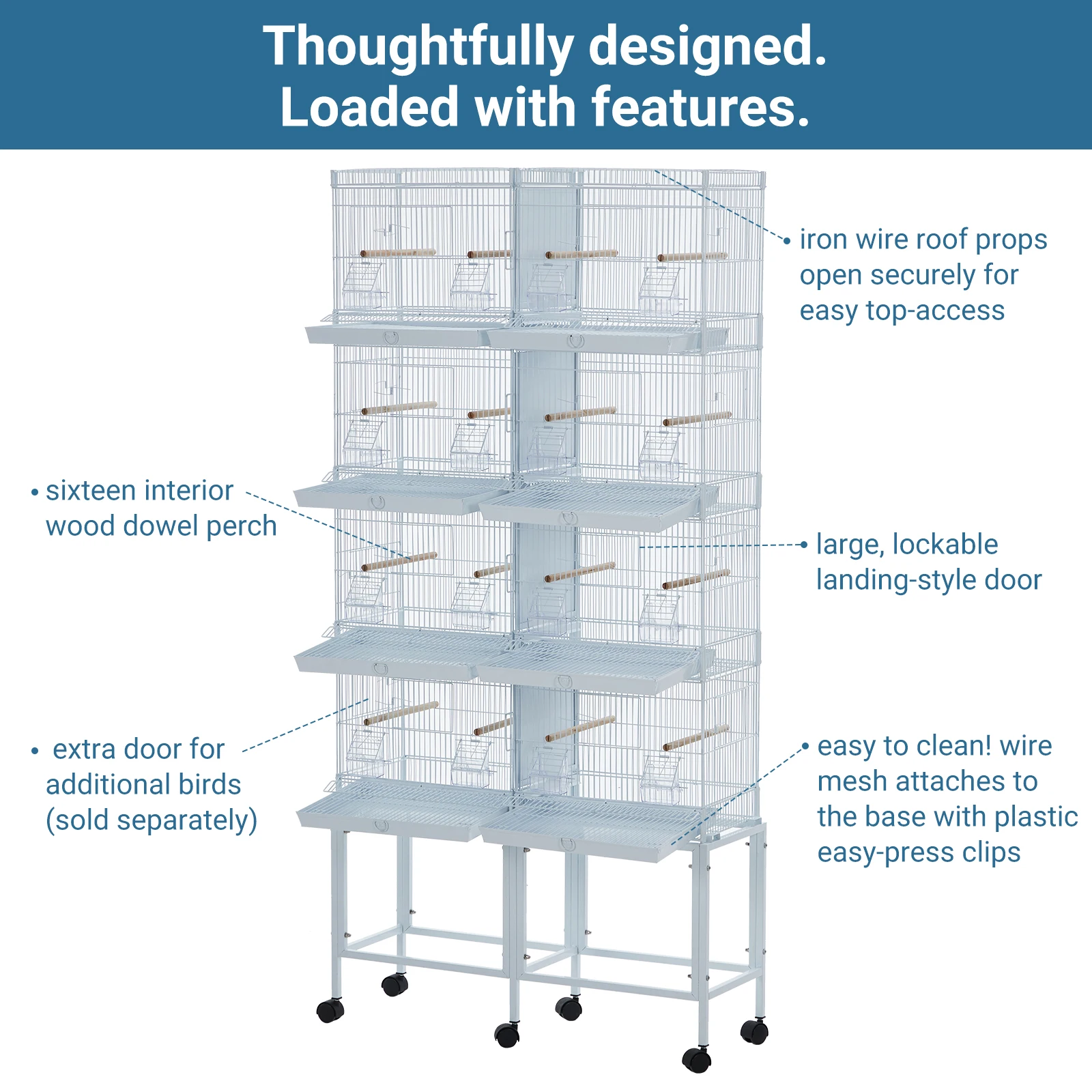 — Pet-parent friendly features include multiple feeding boxes with secure access doors, large entryways, and a seed guard to keep your feathered friends safe and your home tidy.