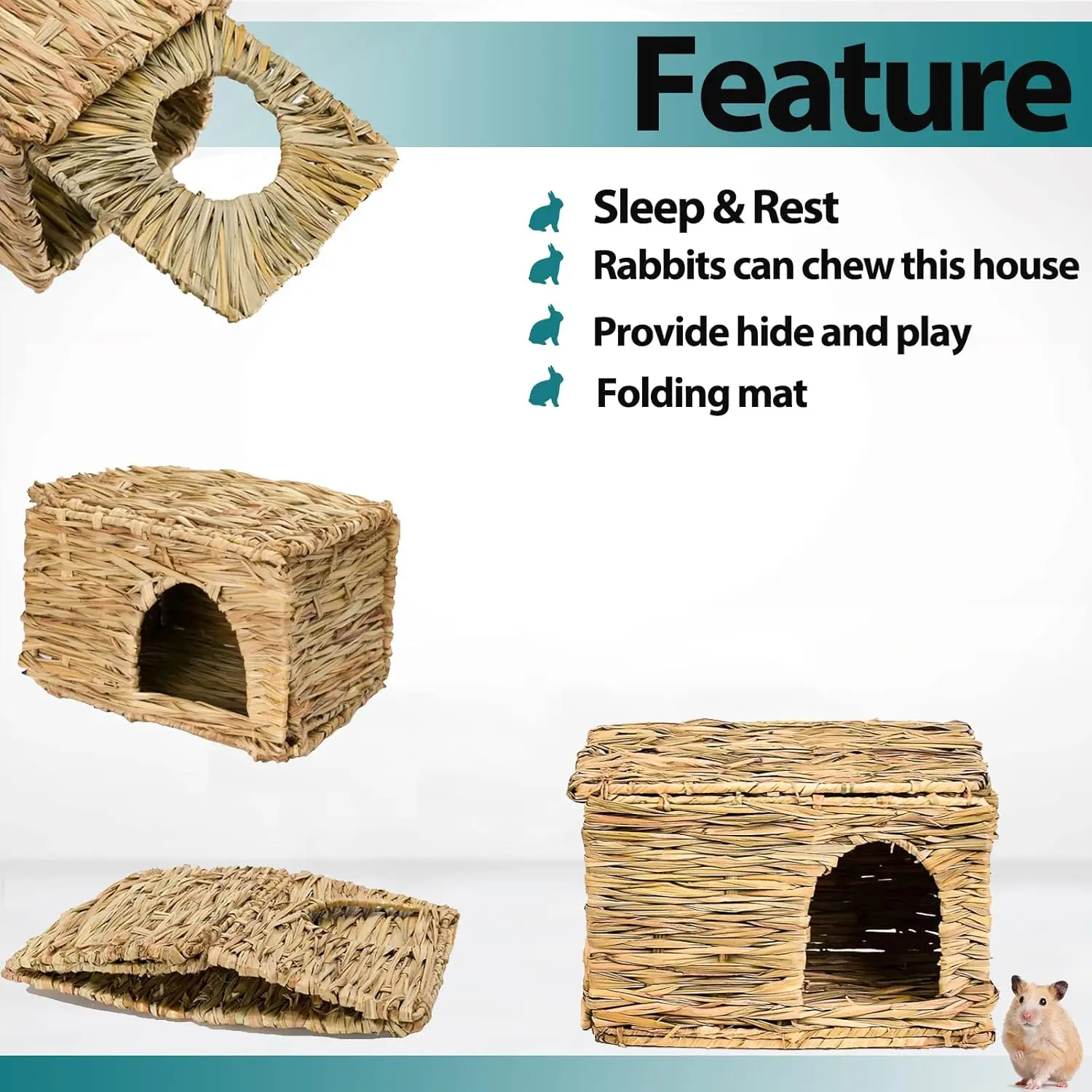 【Play and Rest】Hide can provide more fun for rabbits. Bring home a folded woven straw house for your furry friend. This is a wonderful square nesting product that your rabbit will love to chew, rest or nest on.