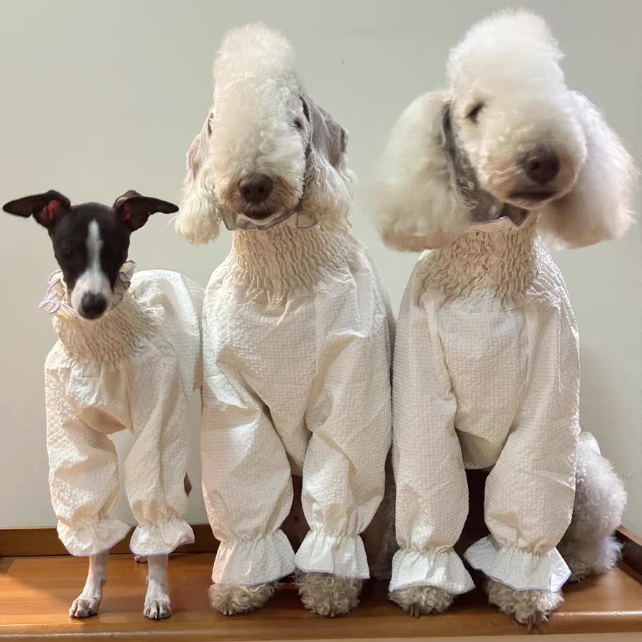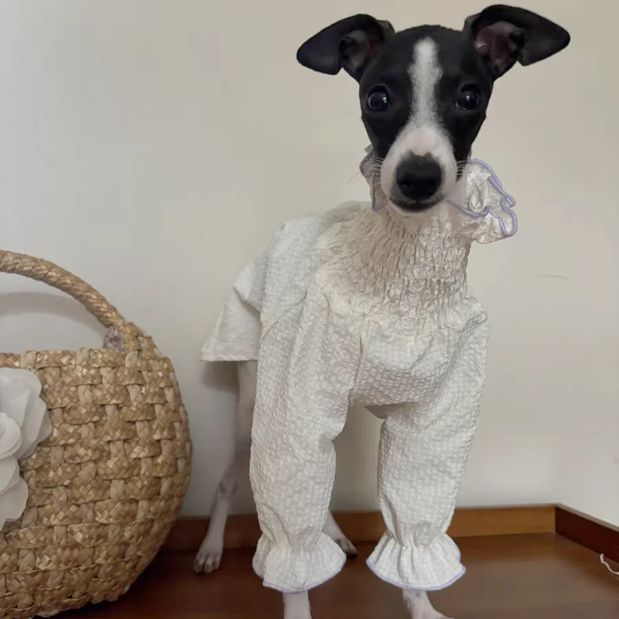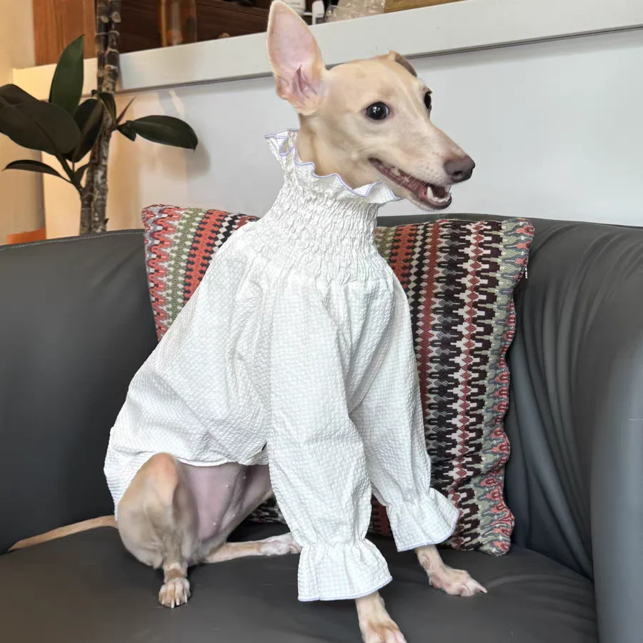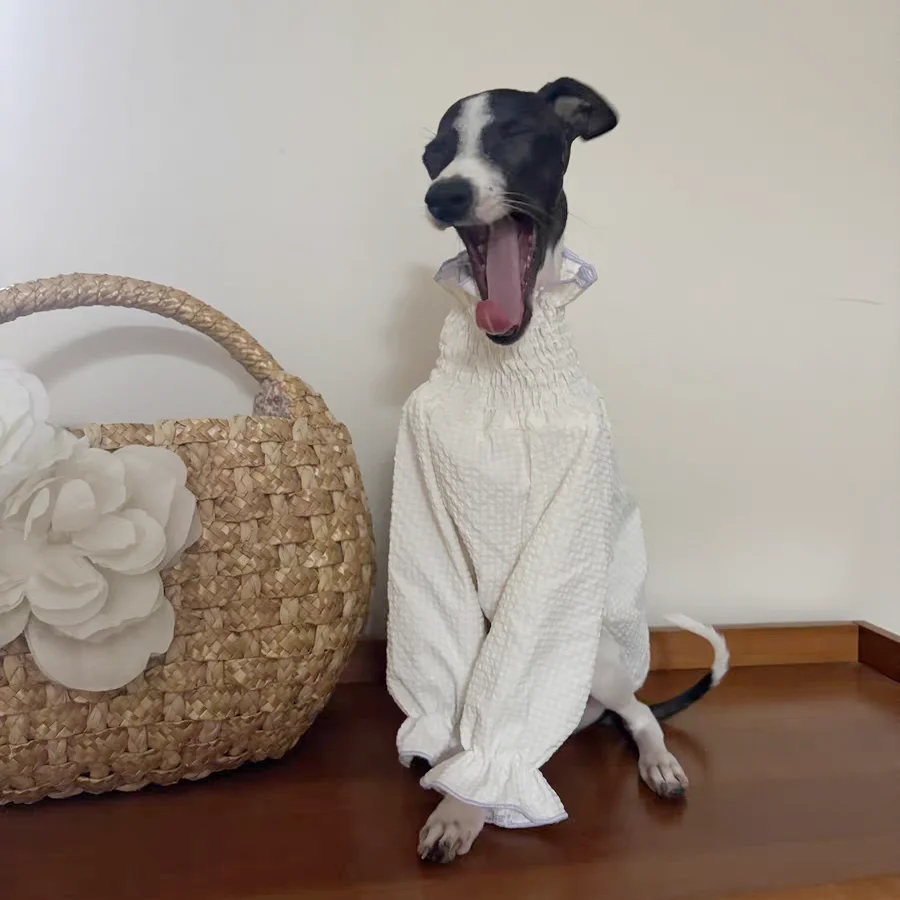 Female Dog Clothing Spring and Summer Princess White Bubble Skirt for Greyhound Sunscreen Fabric Whipbit Long Sleeves Soft Shirt