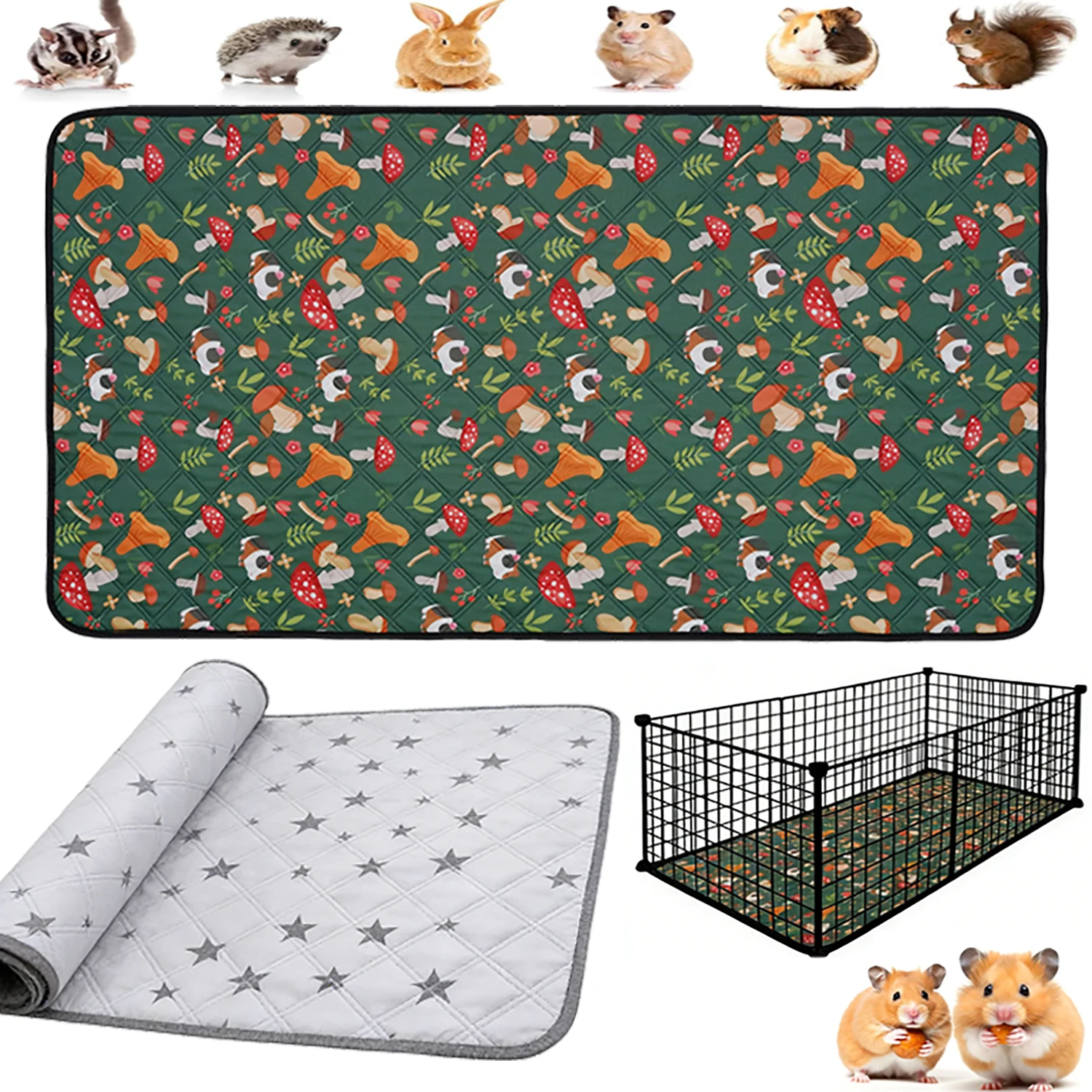 Washable Guinea Hamster Cage Mat Waterproof Super Absorbent Small Animal Anti-Slip Pet Bedding Pig Cage Mat