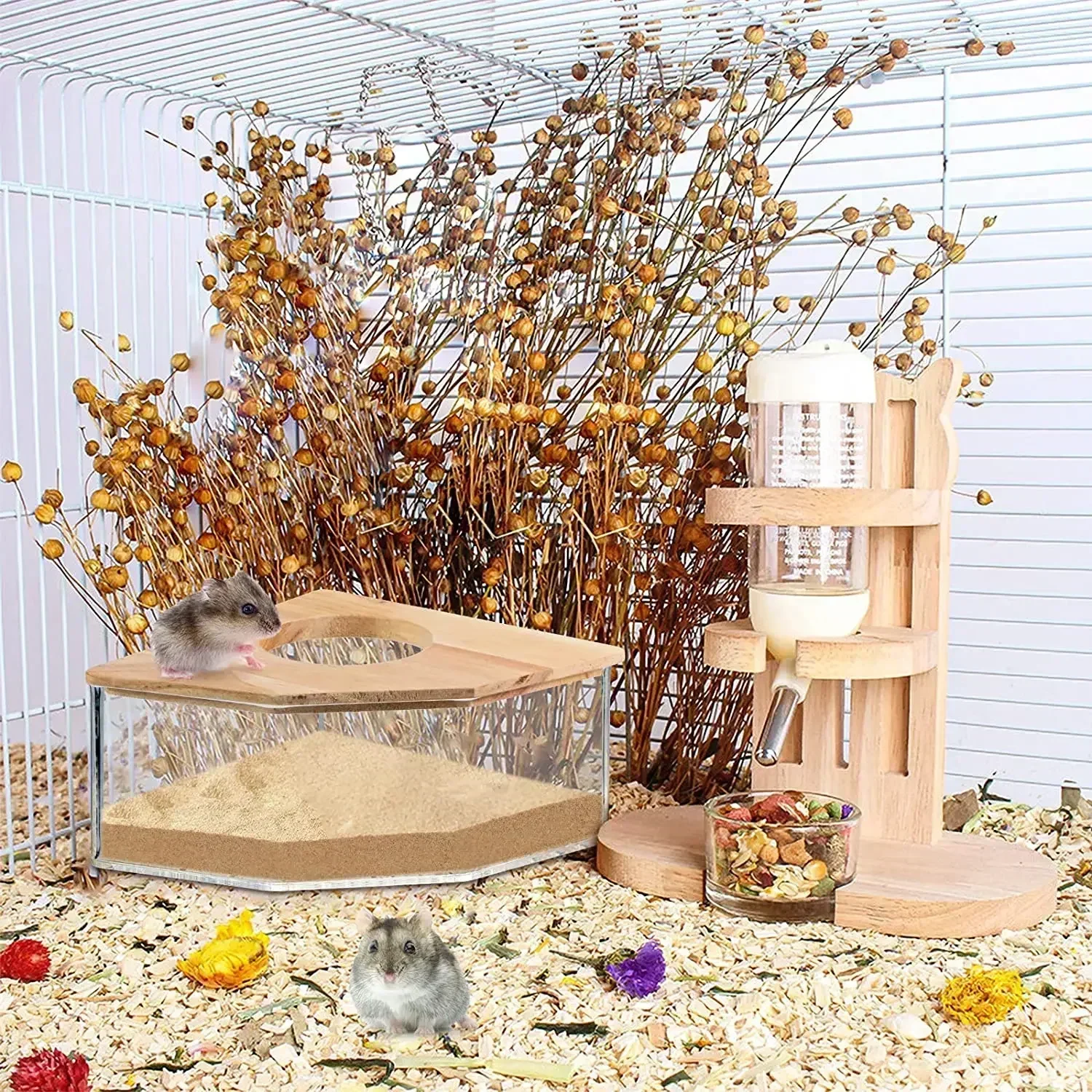 Package includes: 1 Pcs Hamster Sandbox + 1 Pcs Solid Wood Cover (Sand Not Included)