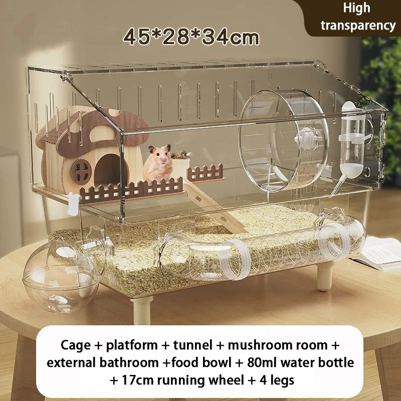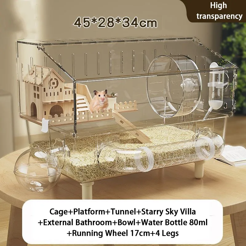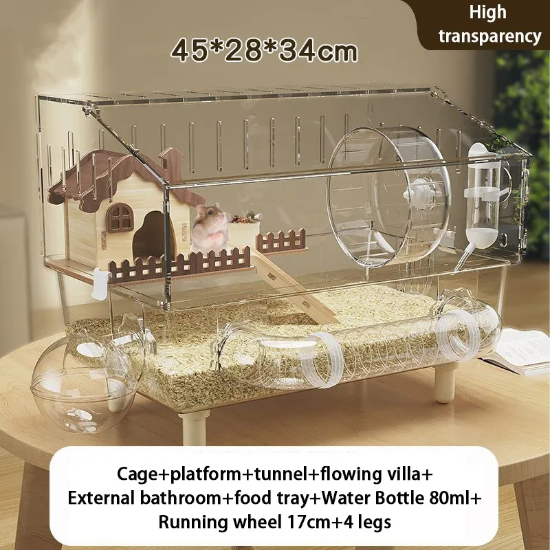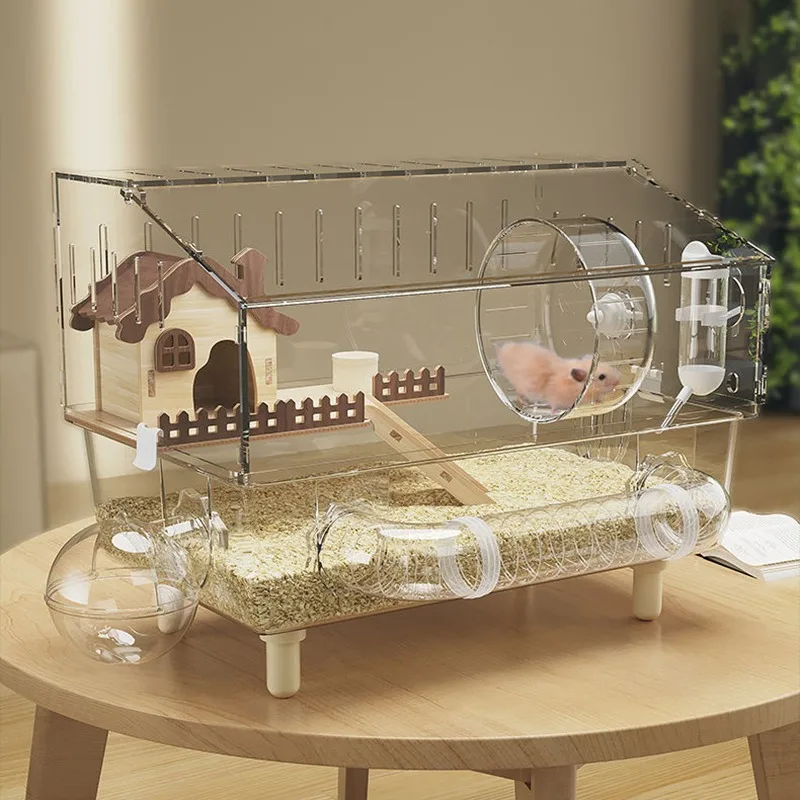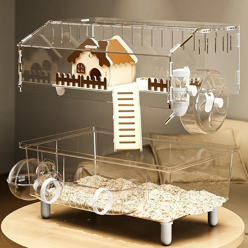 Hamster Cage Transparent Acrylic Guinea Pig Tunnels Luxury Chew-Proof Rodent House Indoor Syrian Hamster Hedgehog Large Habitats – PawMarketplace