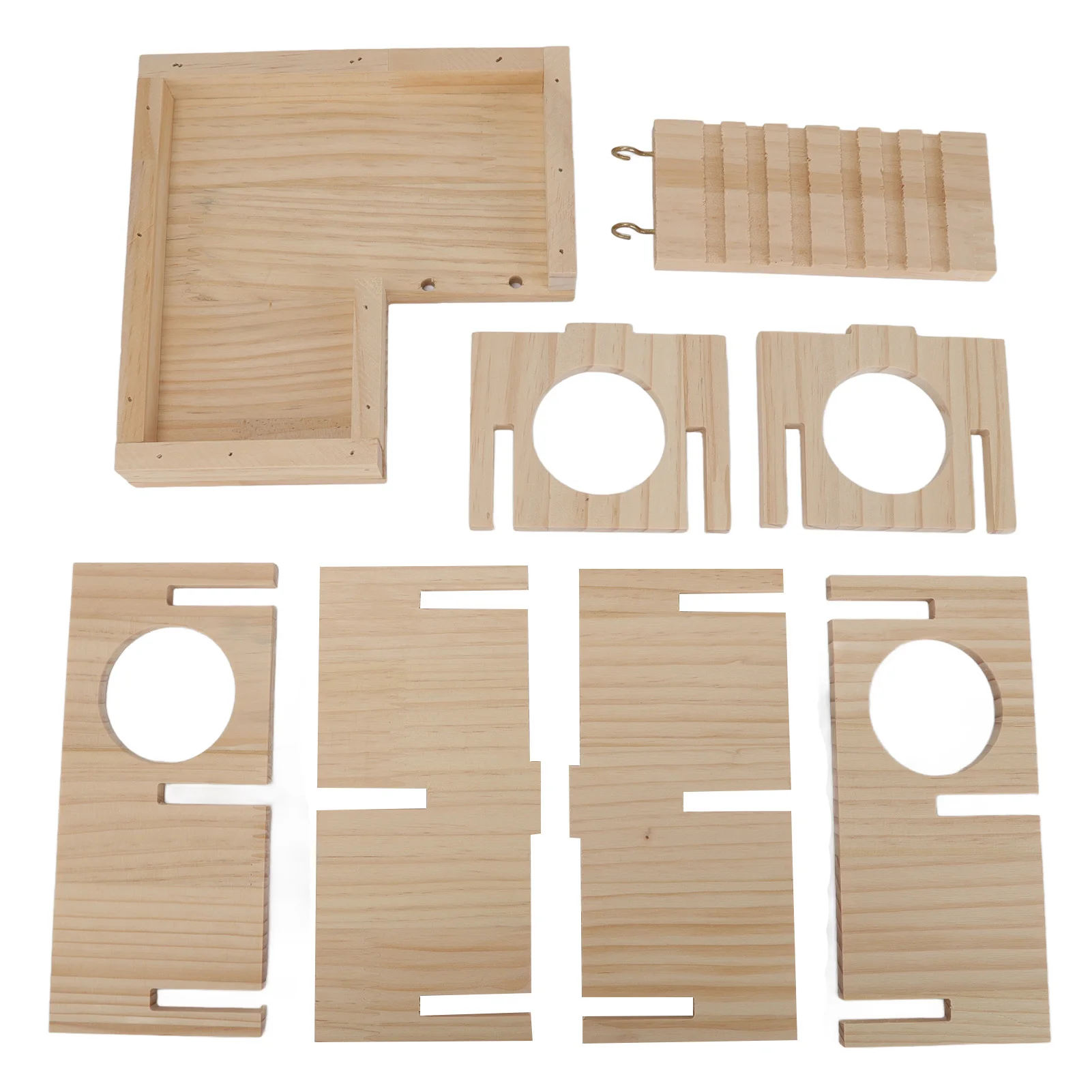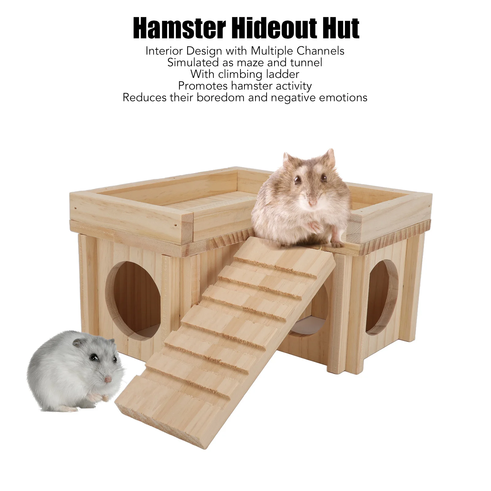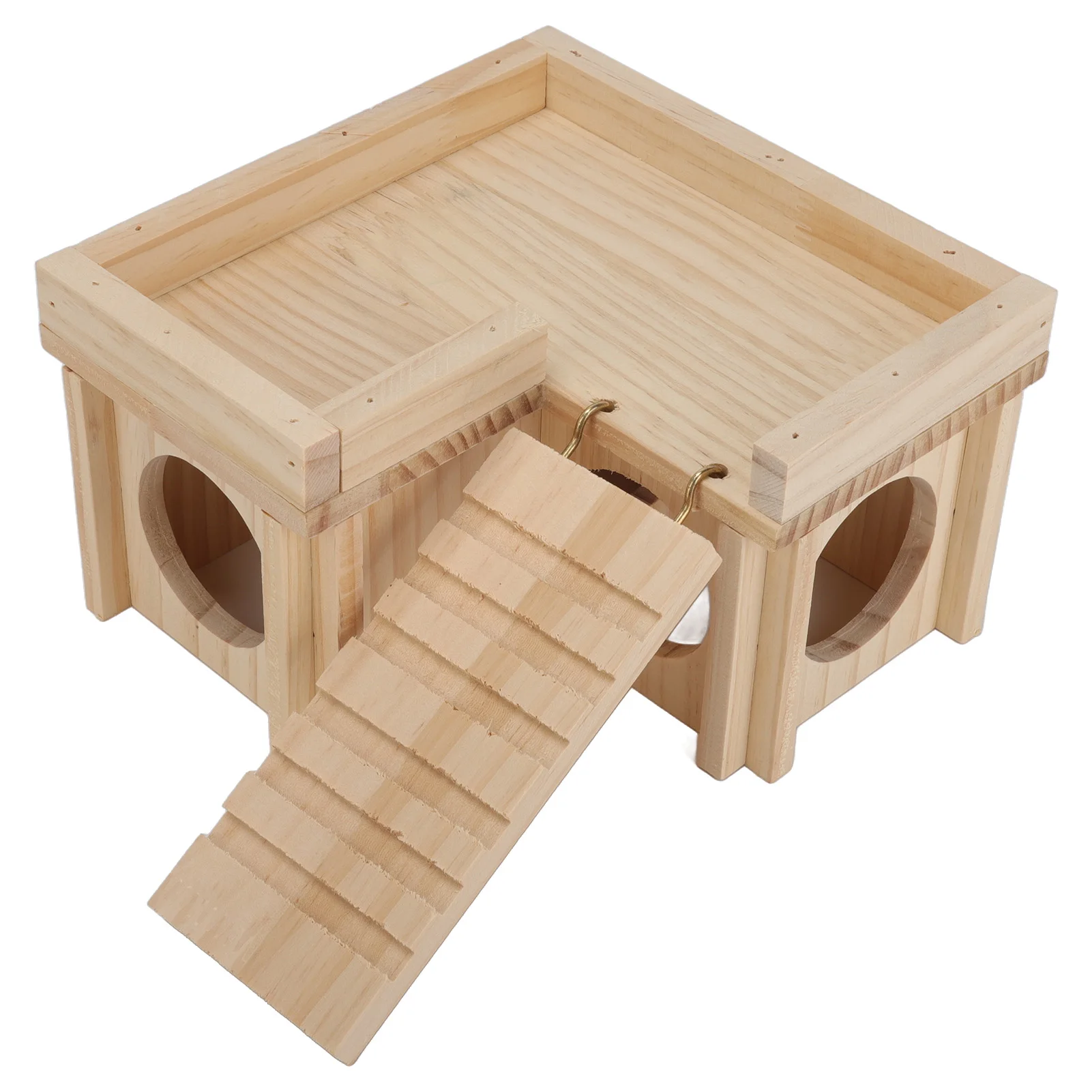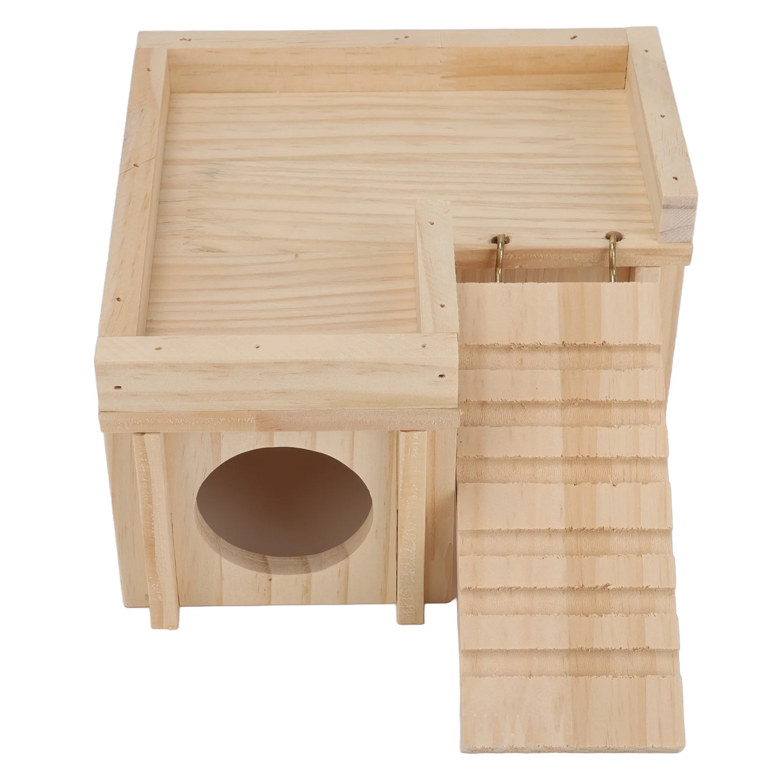 Hamster House Multi Rooms Wooden Hideout Tunnel Toy Small Pet Hut with Ladder for Golden Bear