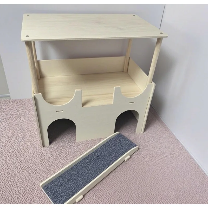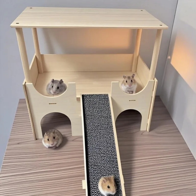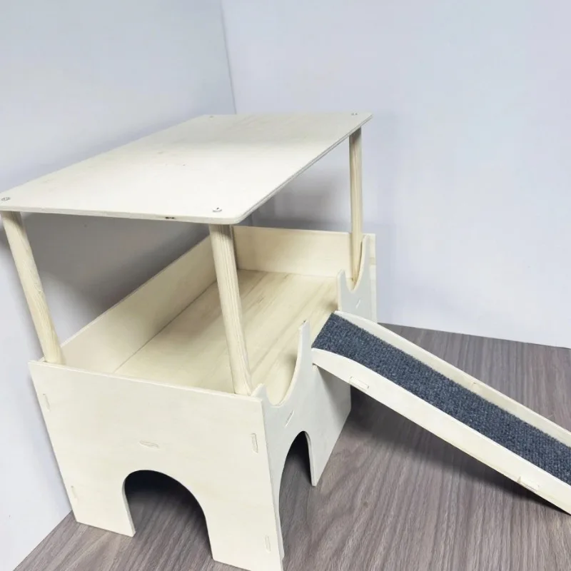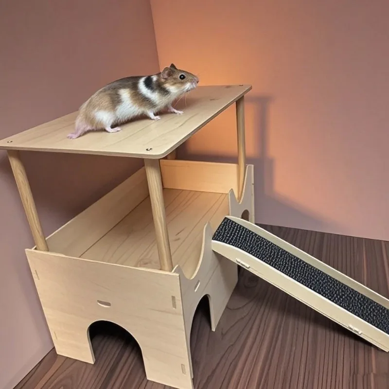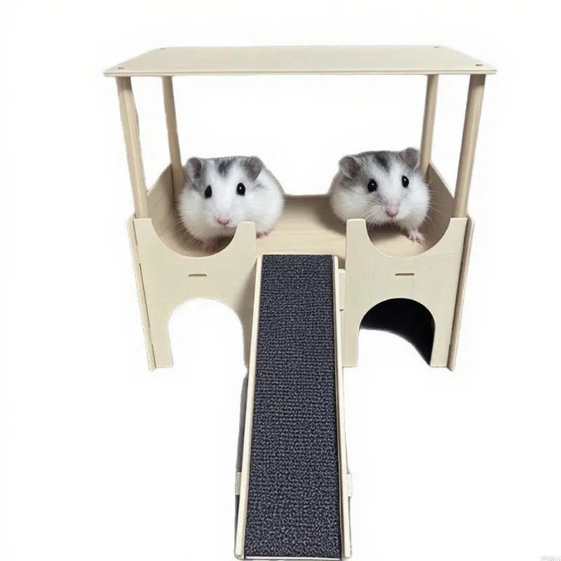 Hamster House with Platform, Wooden Guinea Pig Hideout, Multi-Level Small Pet Cage Accessories, Chew-Proof Shelter with Ladder – PawMarketplace