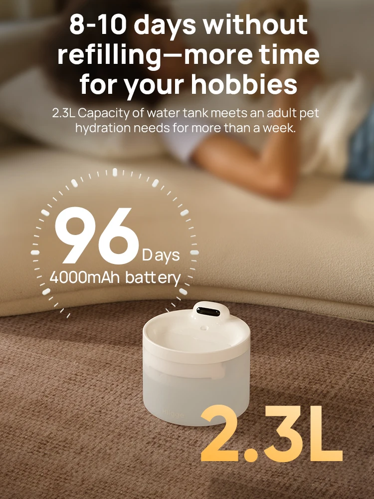 While most battery-powered pet fountains come with a cordless design, they lack app connectivity when not plugged in. Snowball SE, however, offers the best of both worlds: not only can you place it anywhere cordlessly, but you can also simultaneously monitor and control hydration in real-time via the app, knowing your furry friend is always hydrated. Enjoy true cordless convenience and peace of mind.