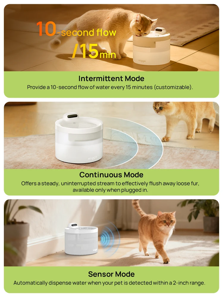 Low water level alert———— When the water level drops below the safe line, the fountain automatically stops to prevent pump damage and ensure safe drinking for your cat.