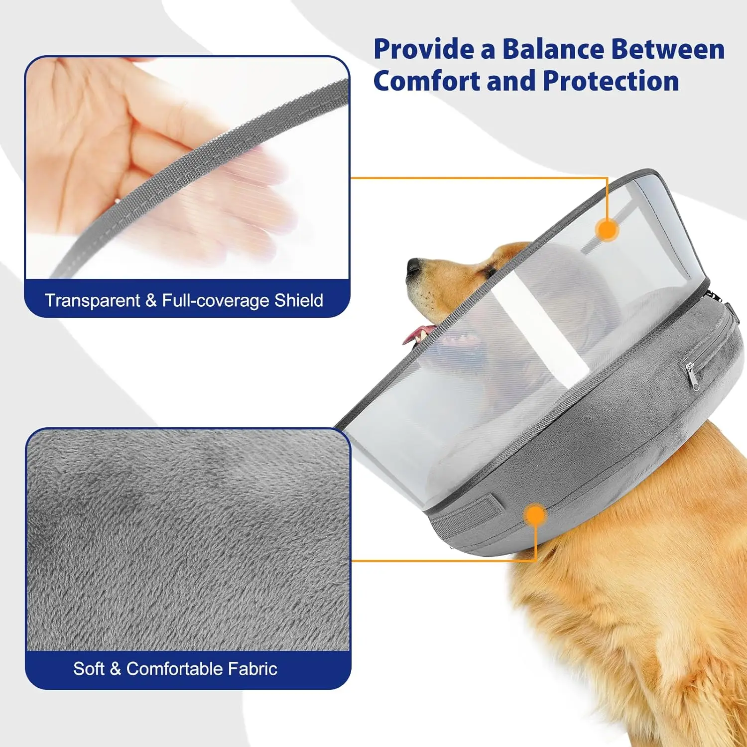 Inflatable Dog Cone Collar with Clear Anti-Licking Shield, Soft Dog Donut Collar After Surgery