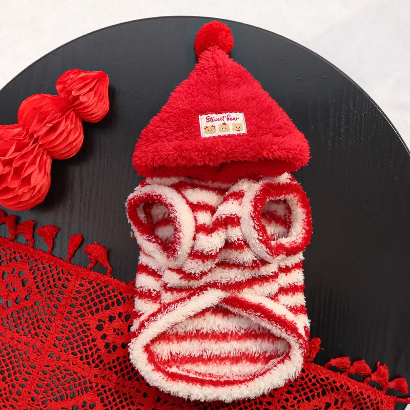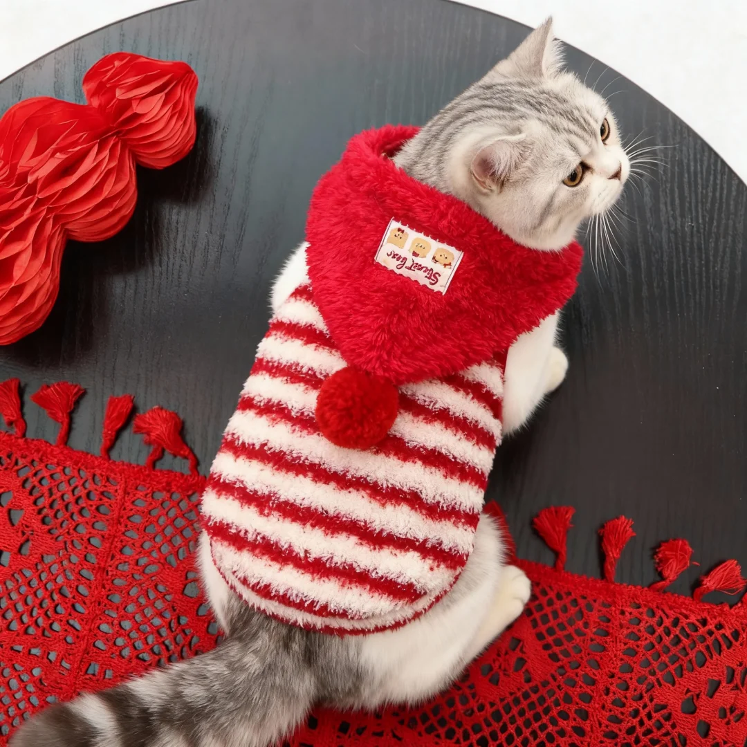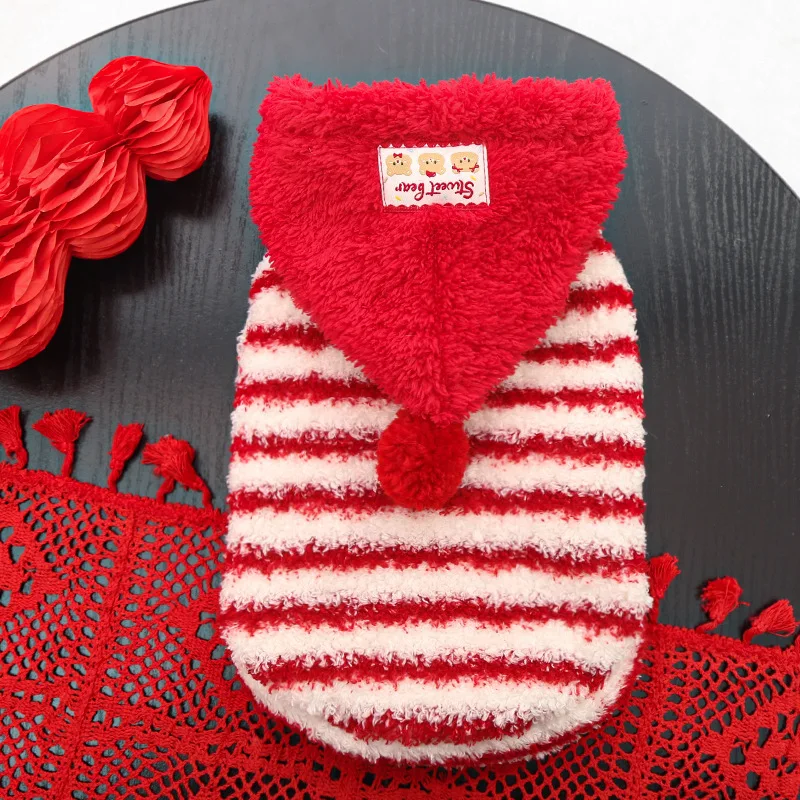 Instagrammable Pet Hoodie, Red Striped Dog Cat Vest, Cute Matching Outfit for Daily Fashion, Cozy Knit Wear with Hood for Puppy – PawMarketplace