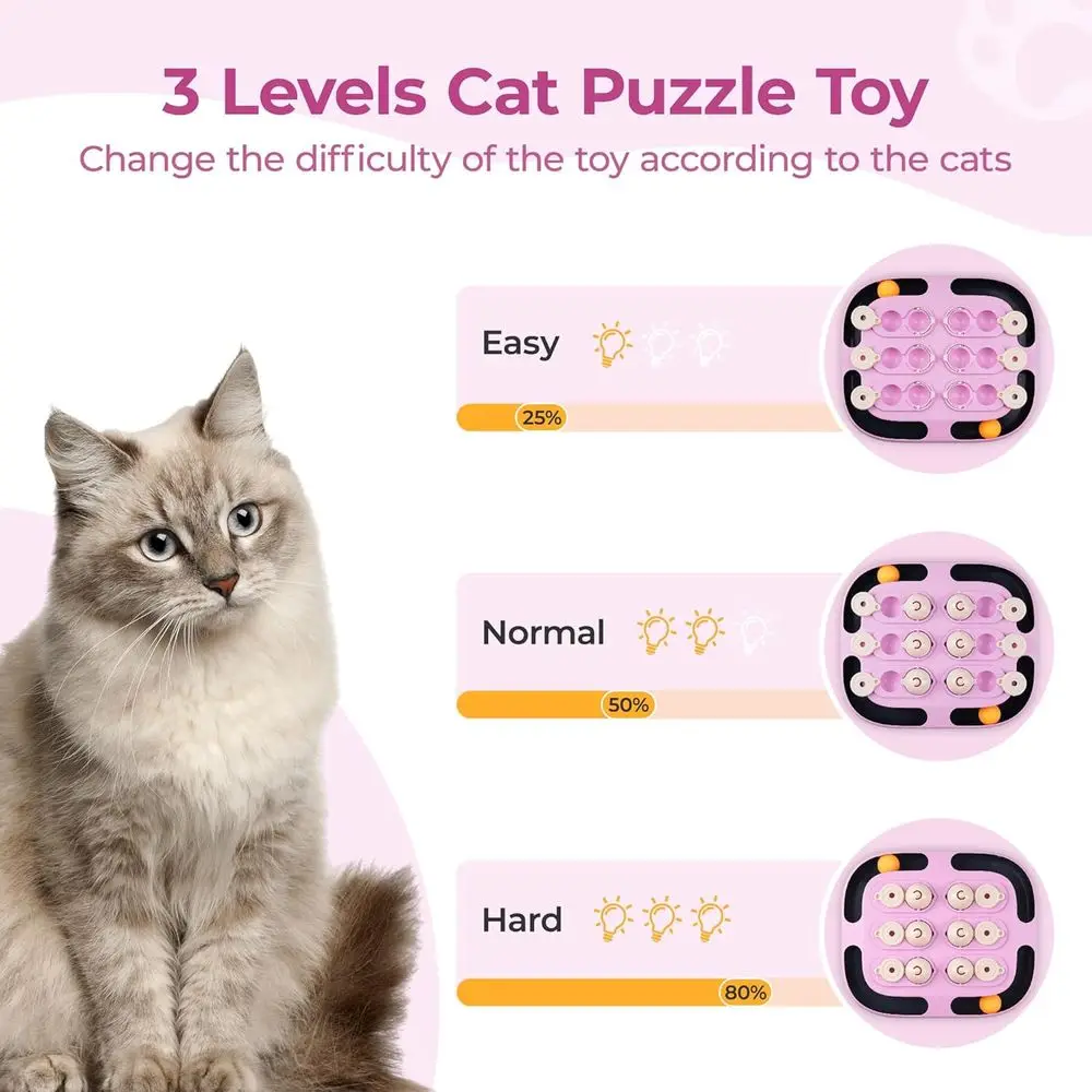 Multiple Gameplay Cat Puzzle: Challenge your cat’s mind with varying levels of difficulty, adjusting the game to match your cat’s intelligence and training level.