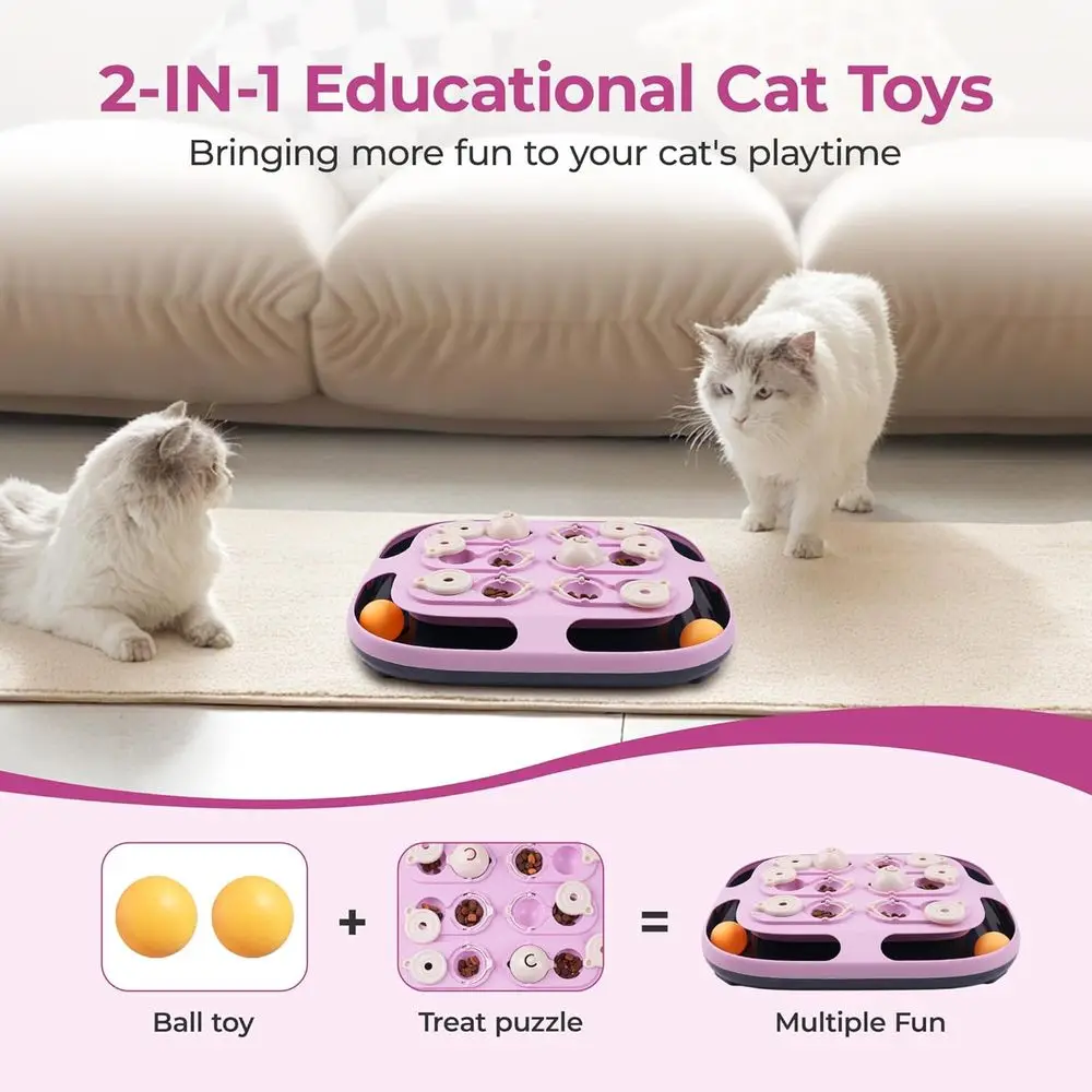 2-in-1 Design: This interactive cat toy caters to your cat’s hunting and feeding instincts. It’s a perfect choice for cat enrichment and indoor cats, combining puzzles, track balls, hide-and-seek, and food dispensing into one toy.