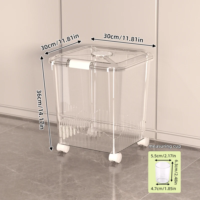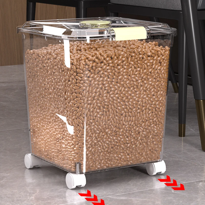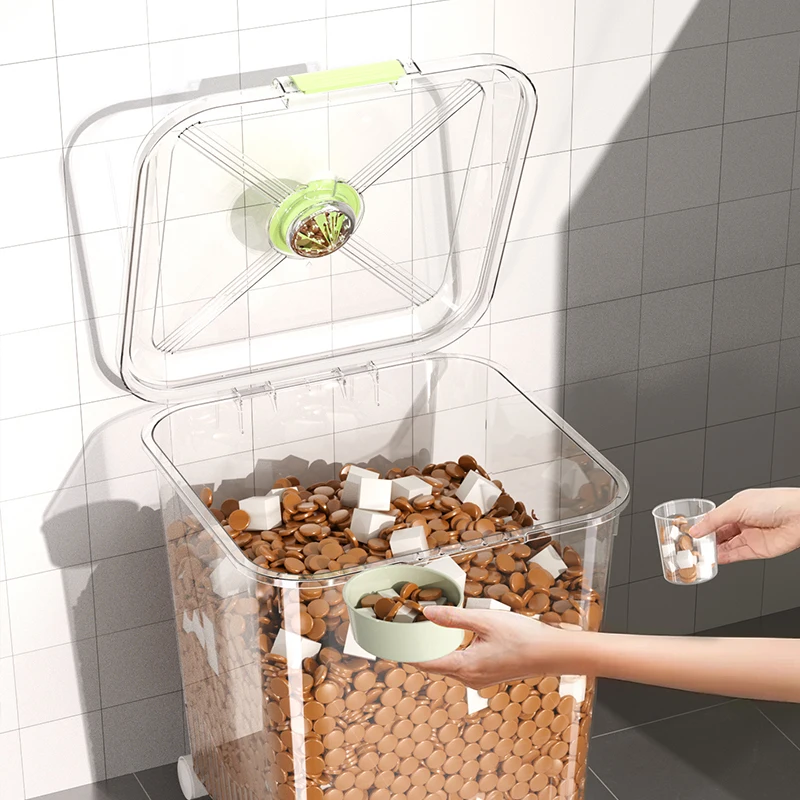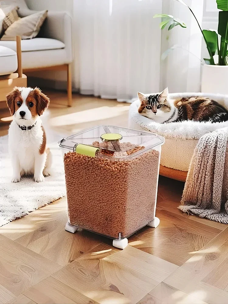 Large Capacity Transparent Dog And Cat Food Storage Container on Wheels Mobile Pet Feeding Bin with Clear Body for Easy Viewing – PawMarketplace