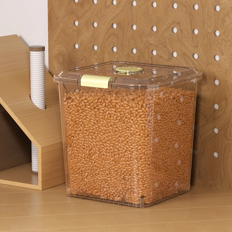 This pet feeding bin offers a large capacity, ensuring your pet's food is always within reach.