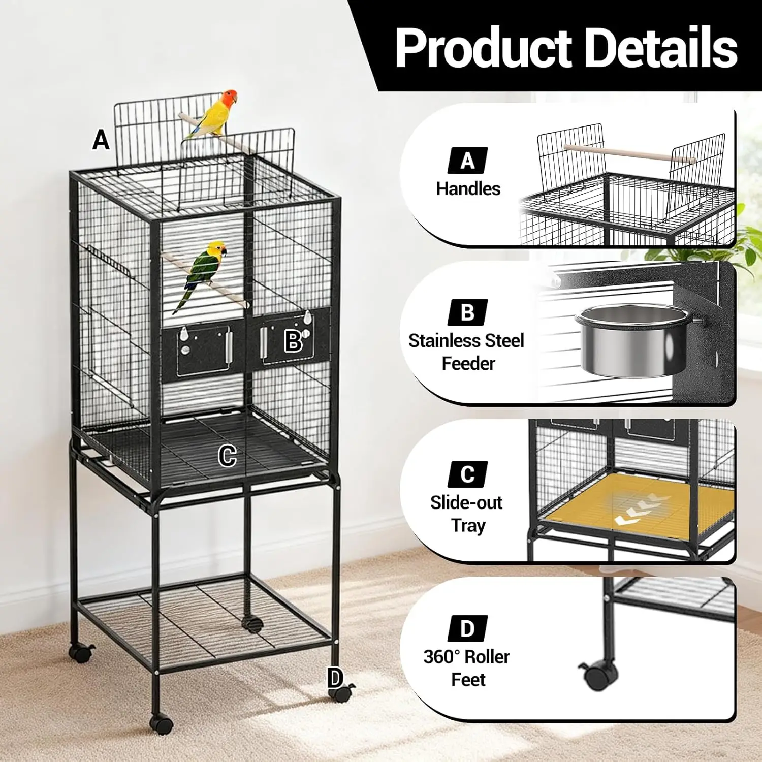 Ideal For: Parakeets, finches, conures, lovebirds, and similar birds. Suited for homes, aviaries, or breeders seeking a reliable, mobile, and easy-to-care-for bird cage. Give your flock a secure and spacious home that adapts to your lifestyle.