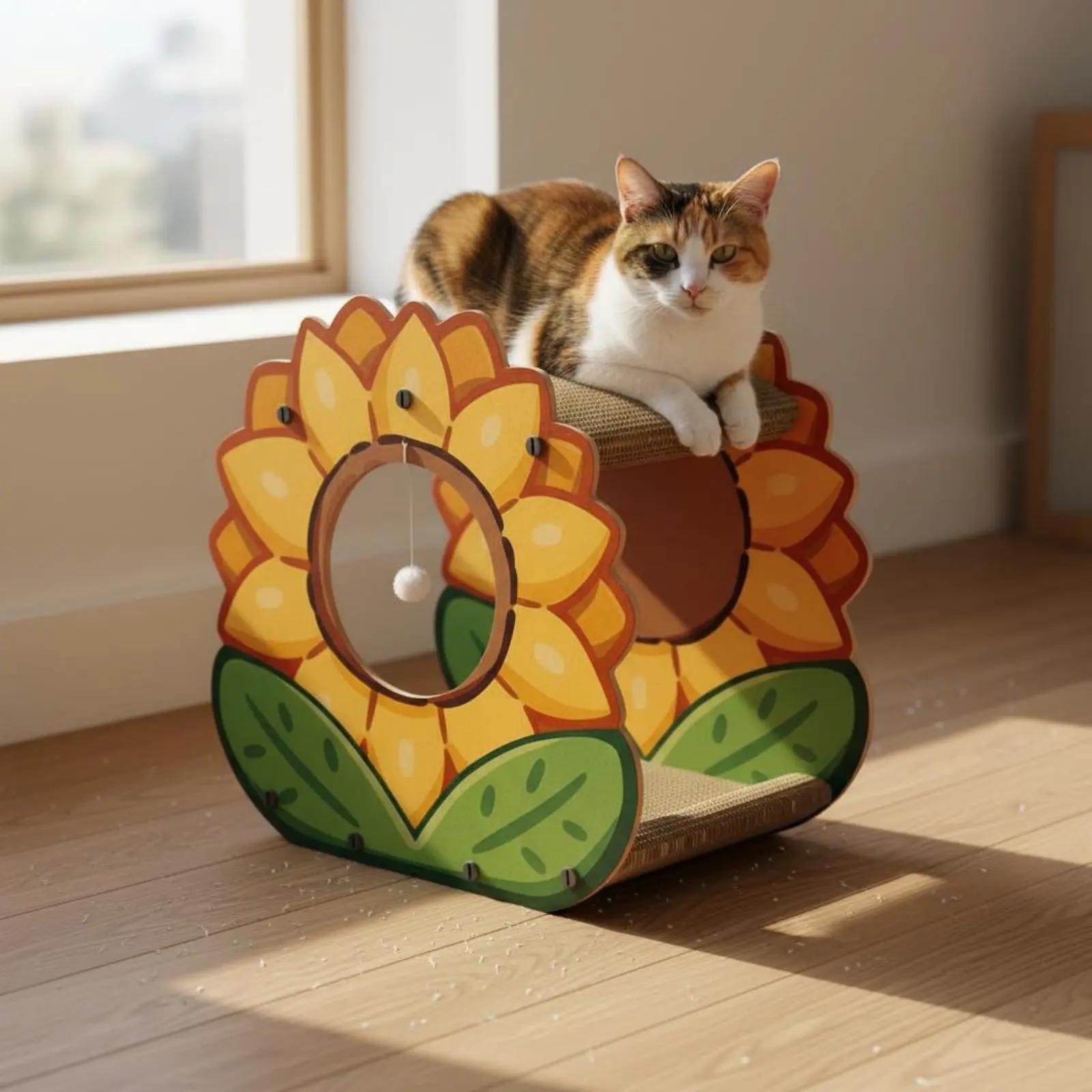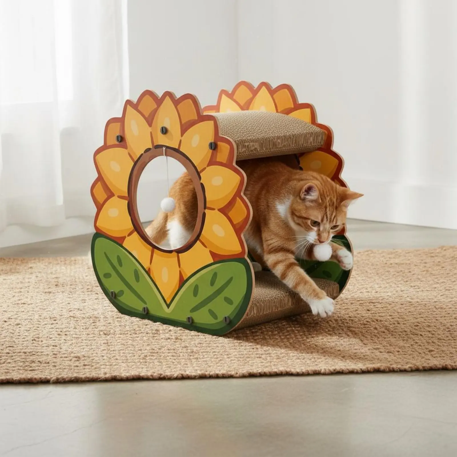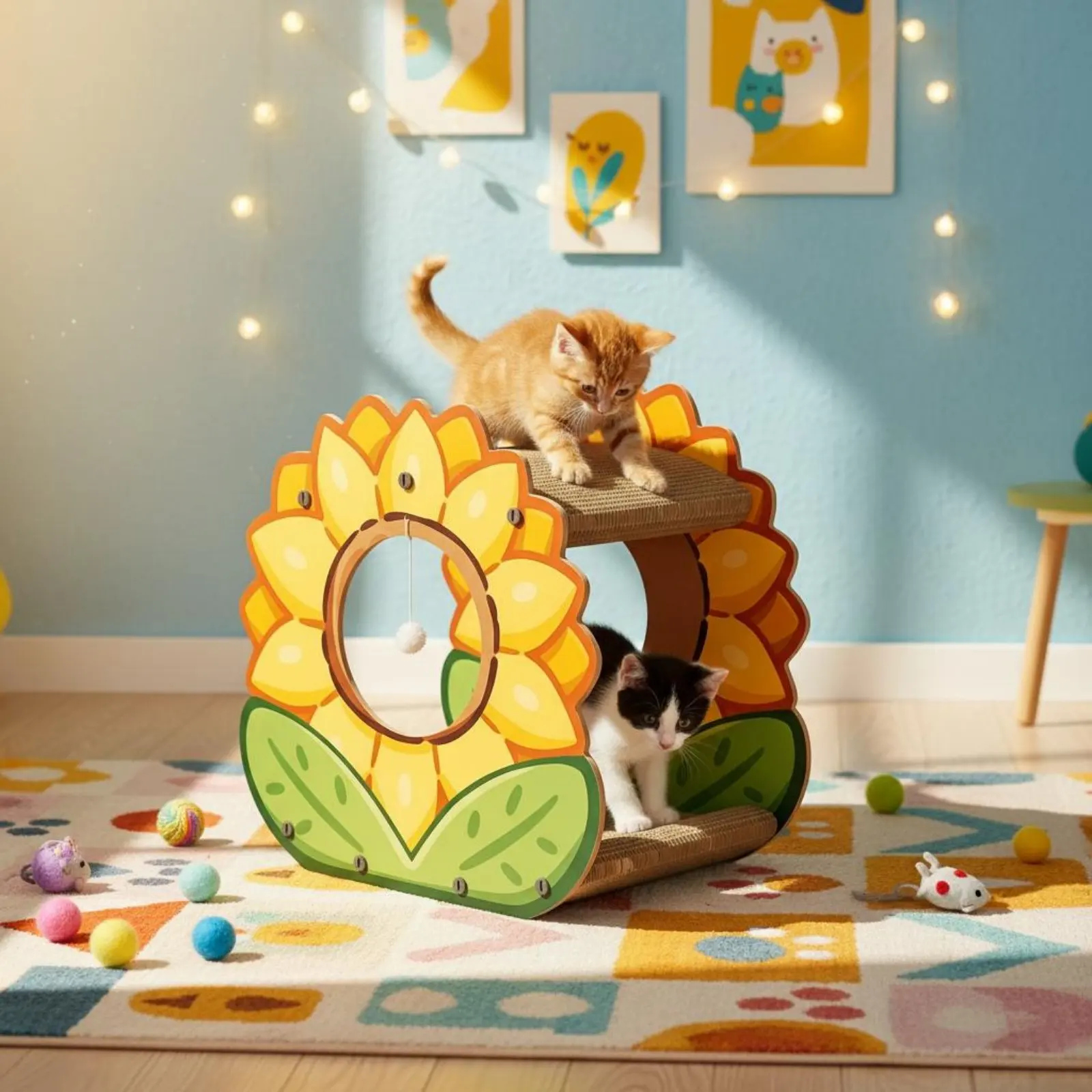 【Two-Tiered-Tier Design】: This multi-functional marigold cat scratcher house features a 2-tier framework that serves as both a snug private nook and an elevated lookout point for your feline friends.