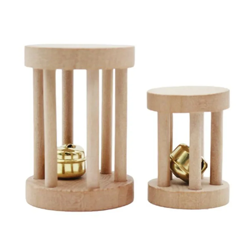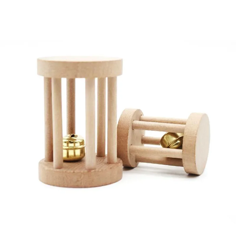 Natural Wood Pet Parrot Raw Wood Toy With Bell Squirrel Bird Hamster Branch Perches Chew Bite Toys Rings Funny Toy For Bird