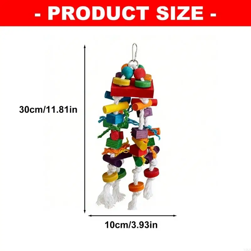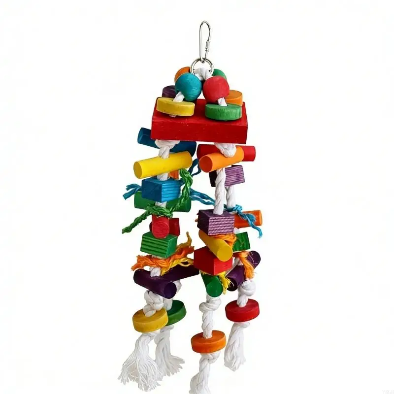 Natural Wooden Large Bird Chew Toy For Medium to Large Parrots With Colorful Cotton Rope For Cage Hanging Bird Climbing Y5GB