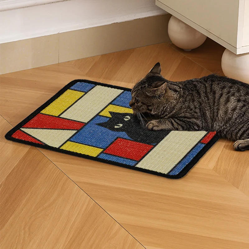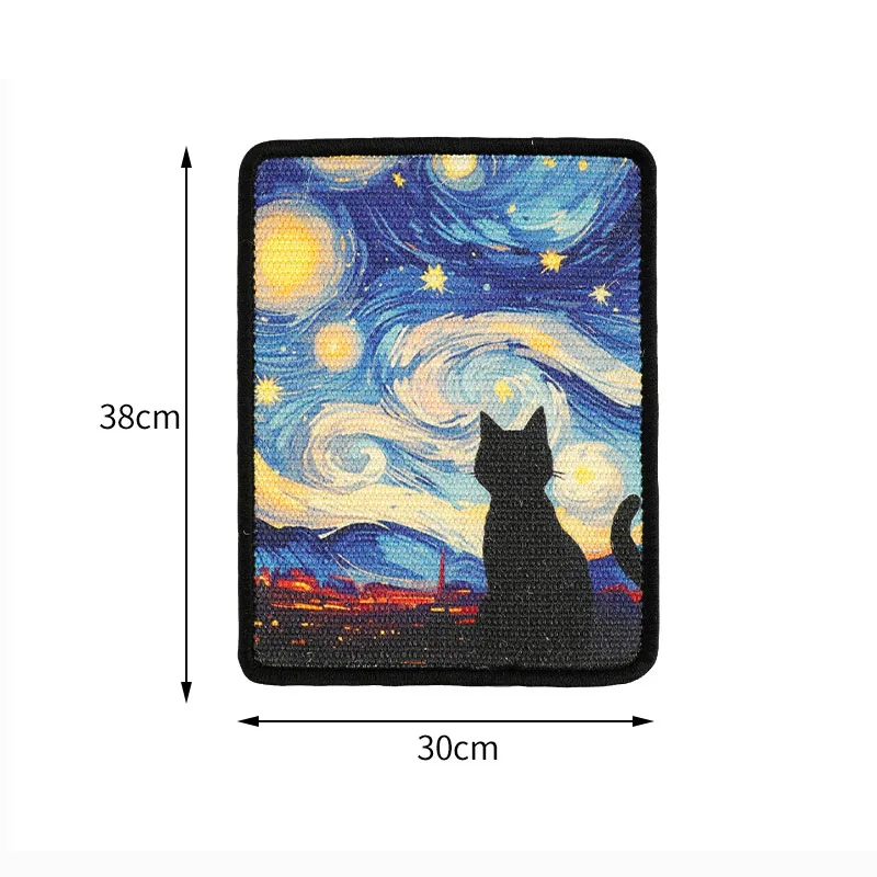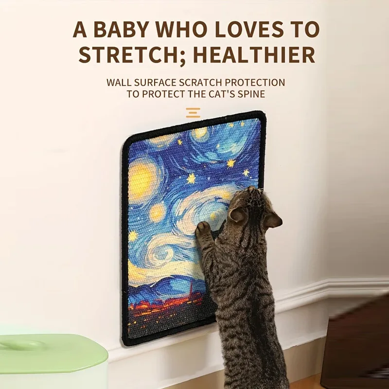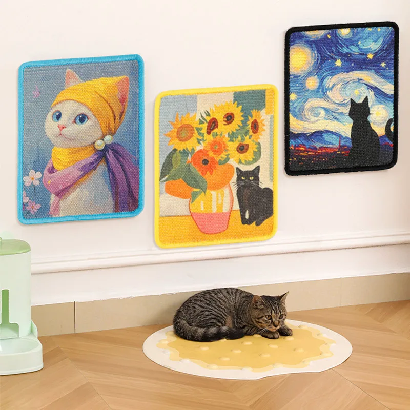 Oil Painting Sisal Cat Scratch Board & Mat Wall-mounted Space-saving Design Stitched Edges Soft Fabric For Indoor Clawing Play – PawMarketplace