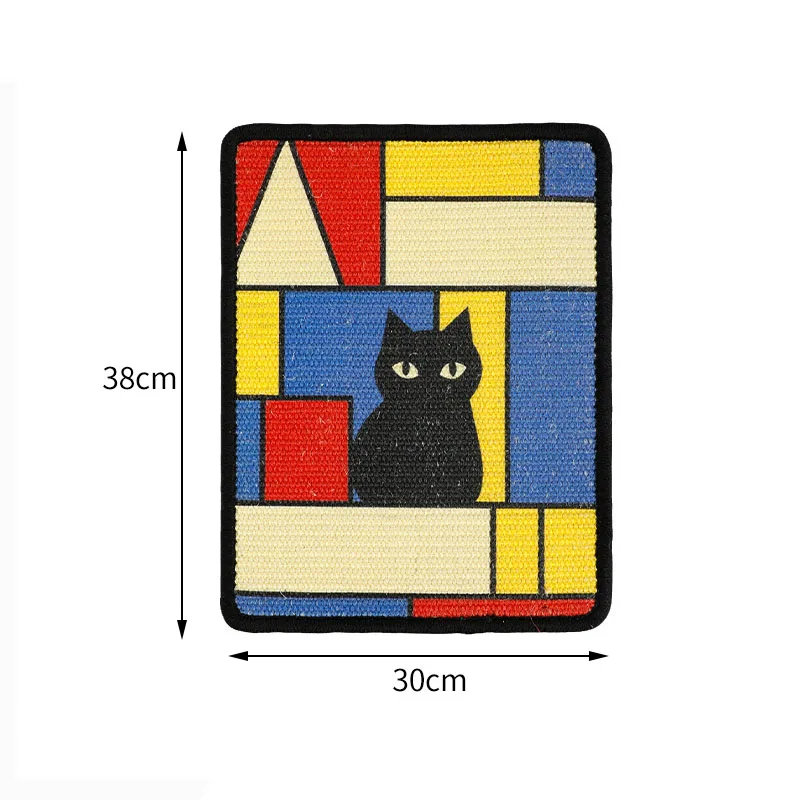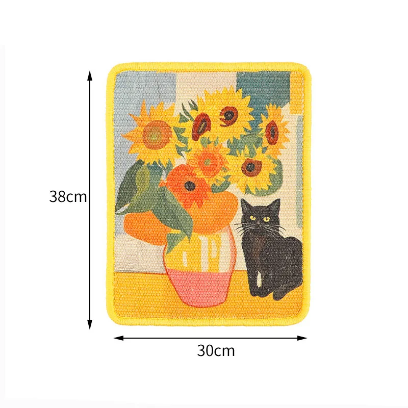 Oil Painting Sisal Cat Scratch Board & Mat Wall-mounted Space-saving Design Stitched Edges Soft Fabric For Indoor Clawing Play