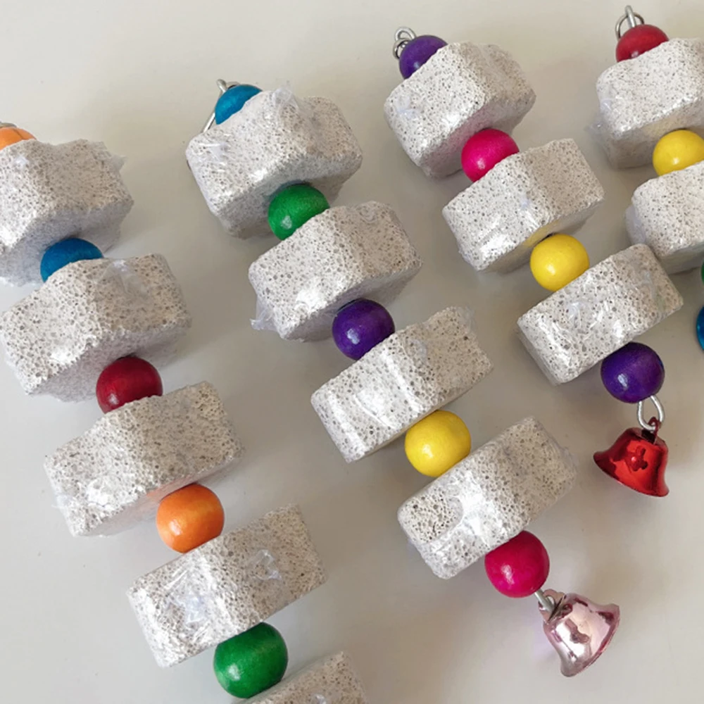 Colorful Fuction: Colorful beads between lava stones and the bell on the bottom attract parrot's attention, reduce loneliness, good for parrot's psychological wellness.