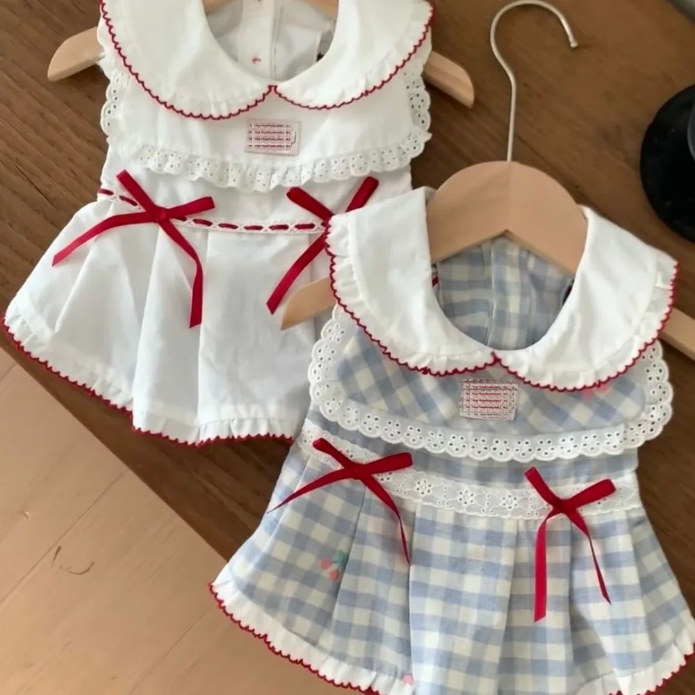 Pet Spring Dress Cat Clothes Retro Collar Shirt Small Dog Teddy Top Puppy Clothes Dog Dresses for Small Dogs