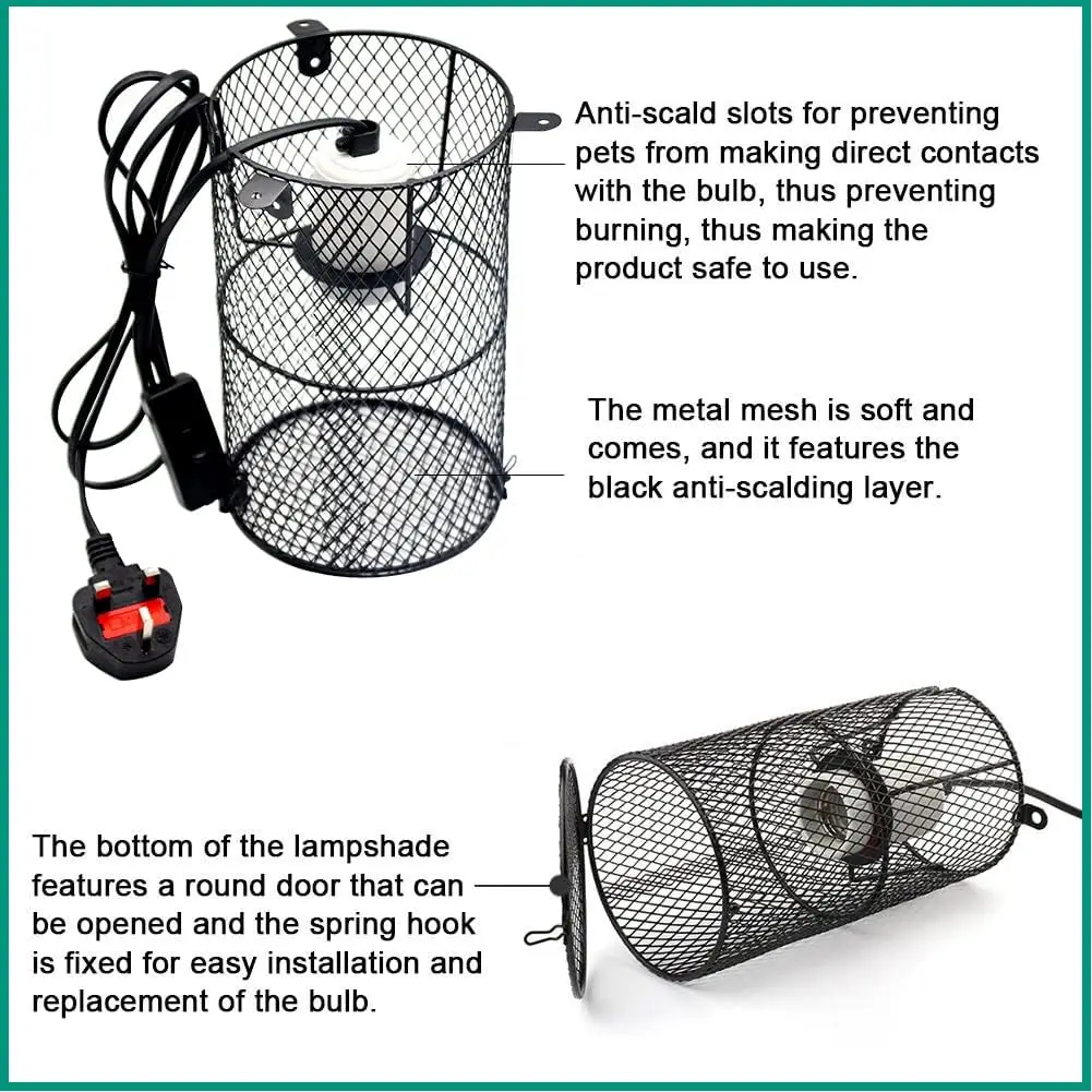 Protective Mesh Guard: Comes with anti-hot cage, providing your pets more cares and avoiding the hurt or burn cause by the overheat light.
